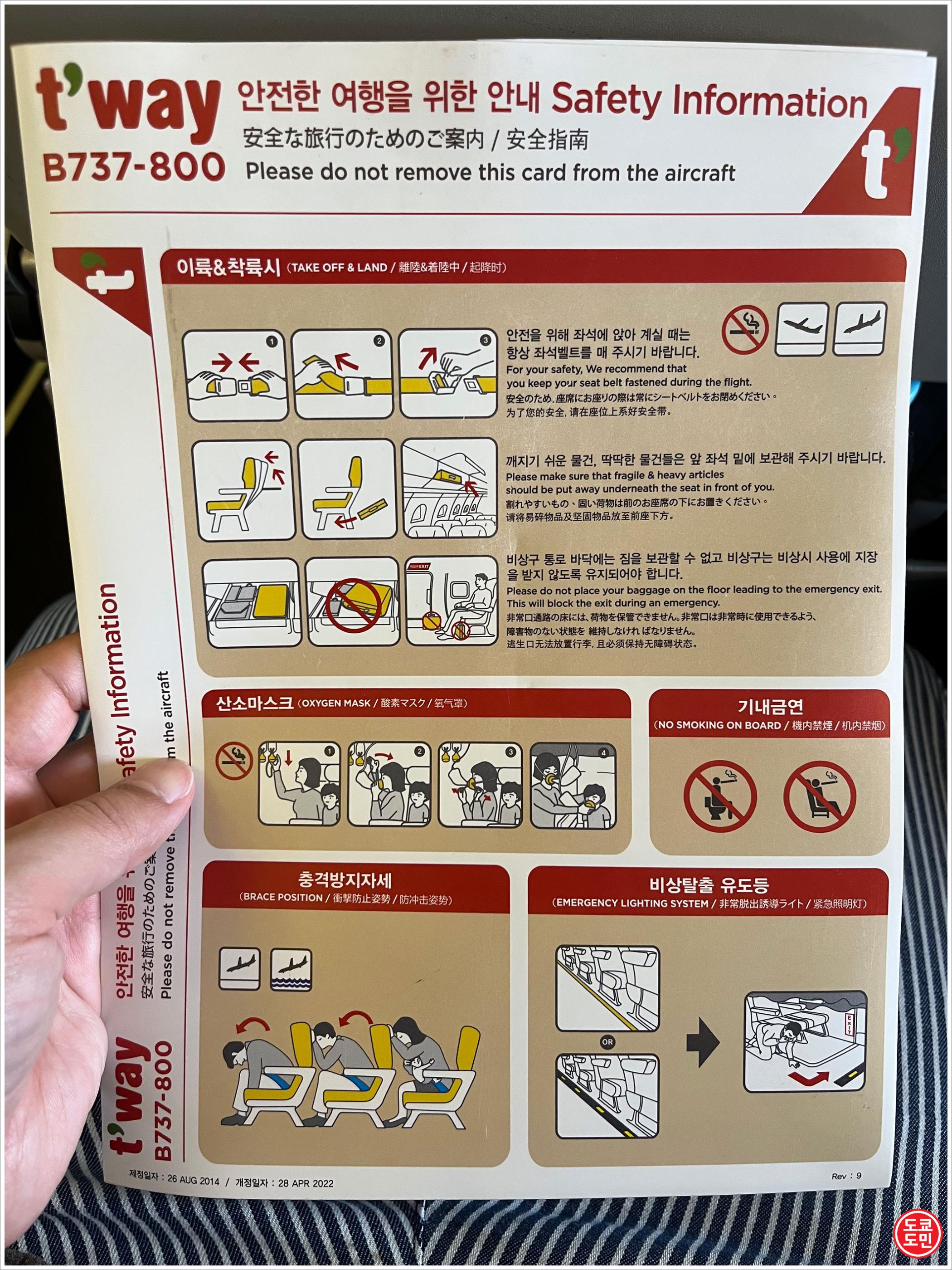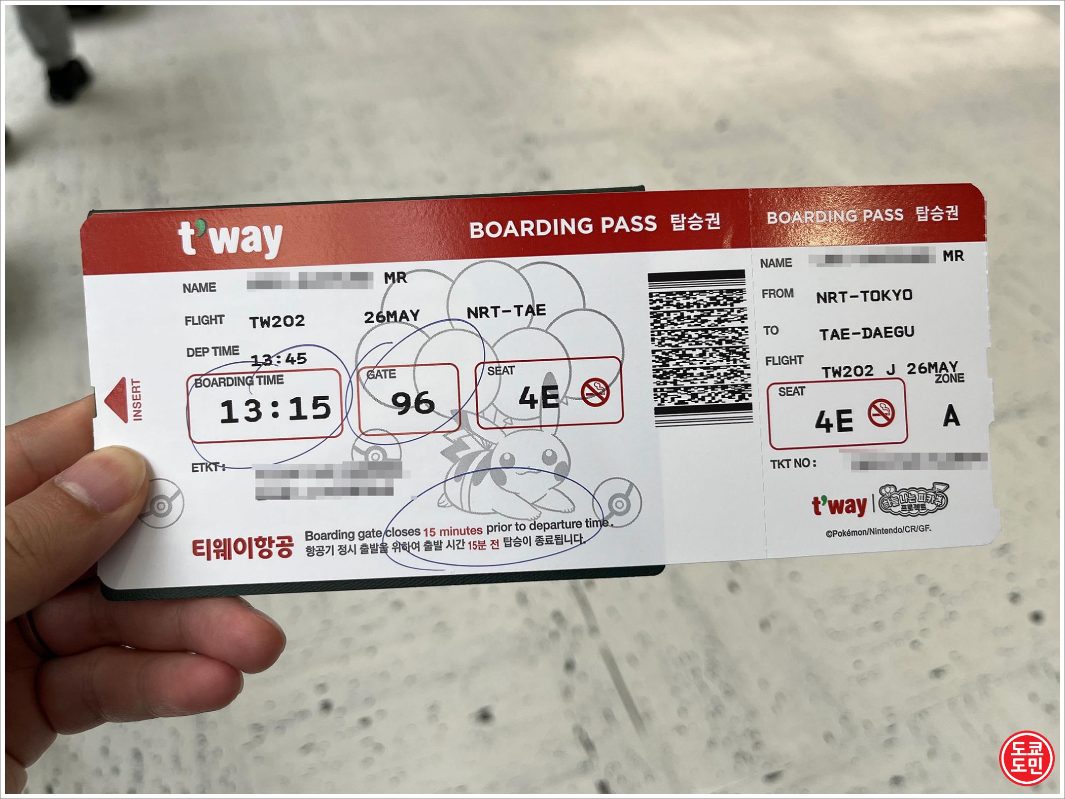 도쿄 나리타공항에서 대구공항으로 가는 티웨이 항공 TW202편을 타봤습니다.