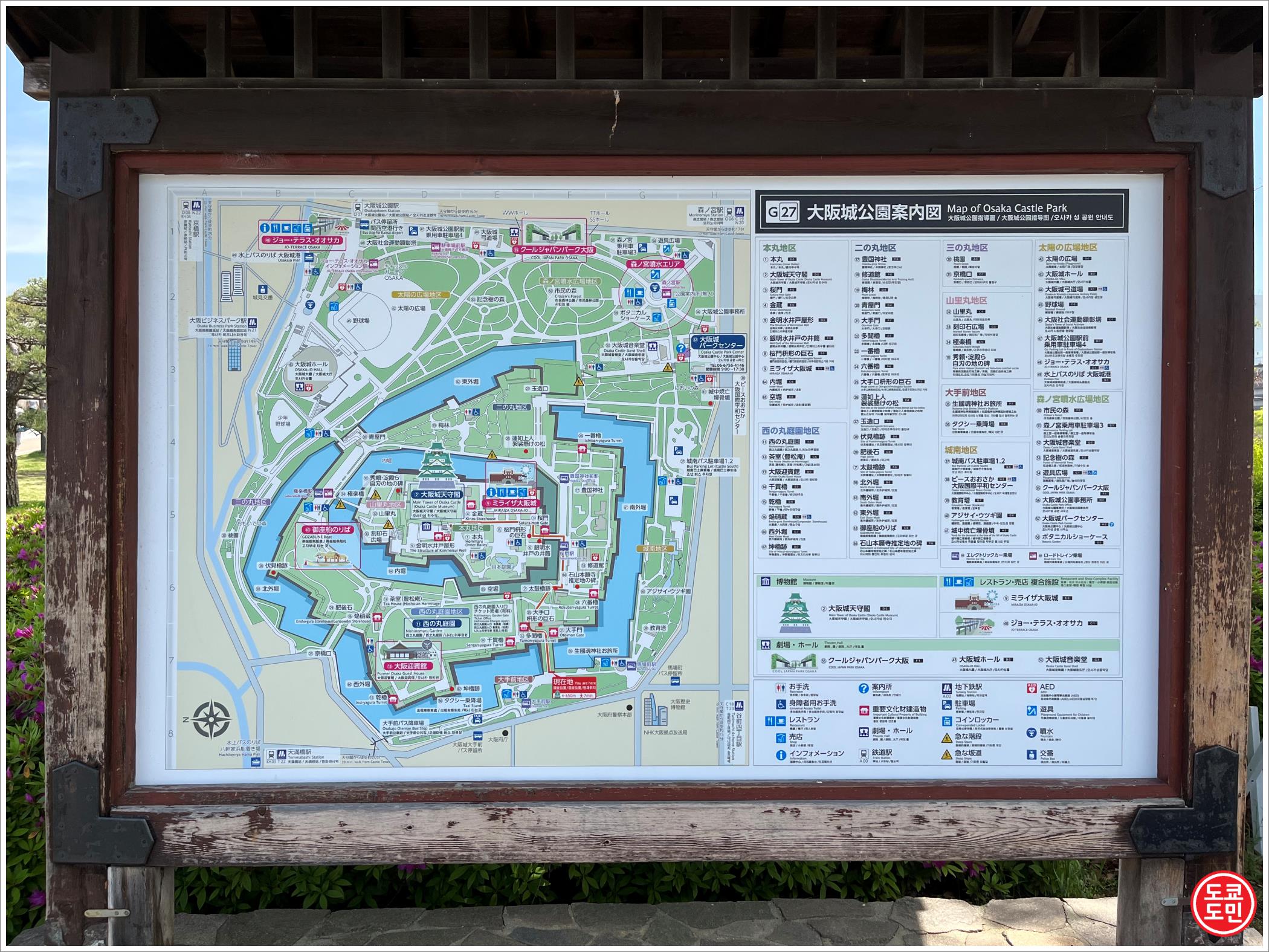 꽤 넓어서 모리노미야역(森ノ宮駅) 1번출구에서 오사카성인 천수각까지 걸어서 10분정도 걸립니다.