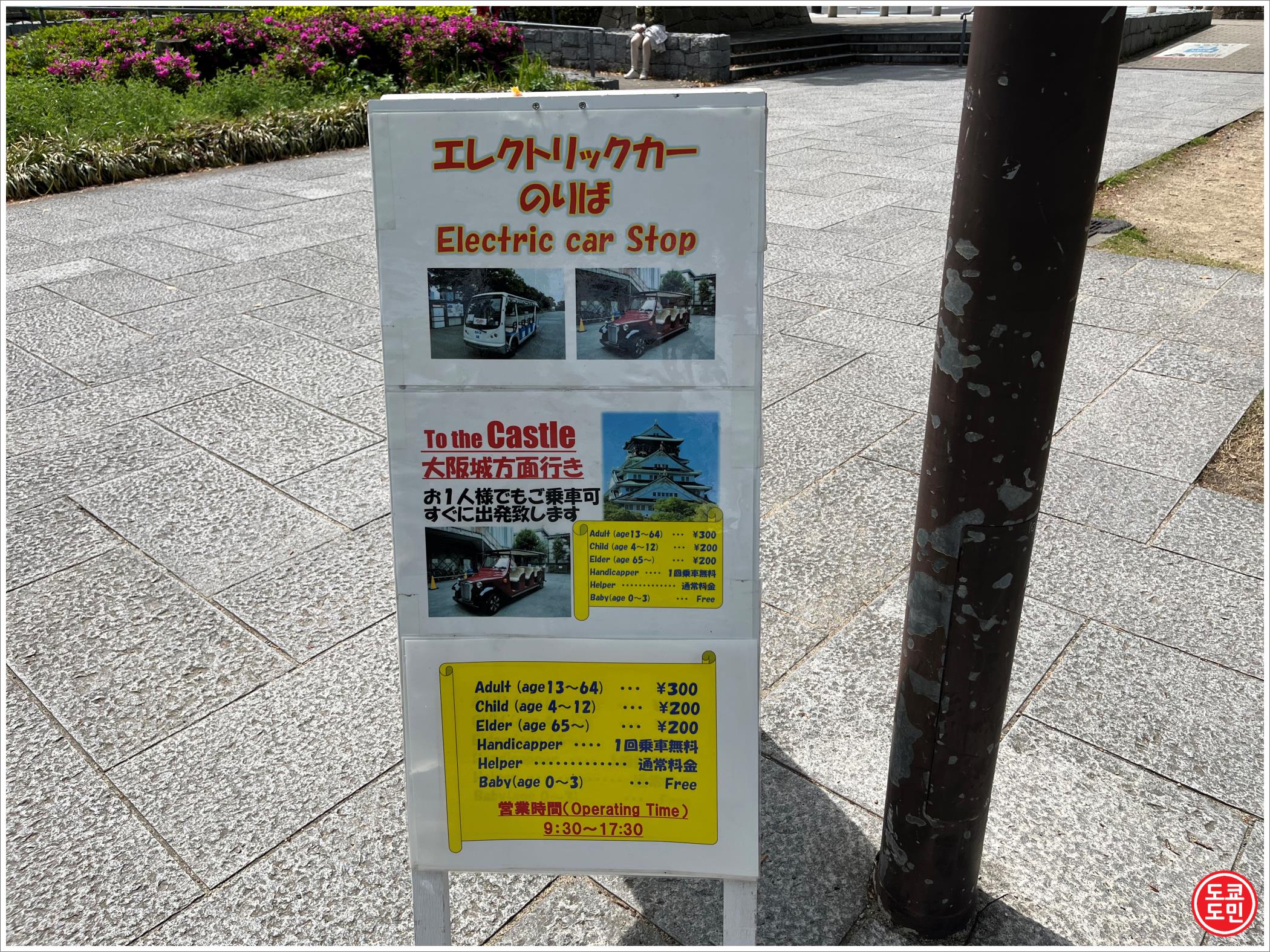오사카성이 넓다보니 성내에 달리는 자동차를 타고 이동 할 수도 있엇습니다.