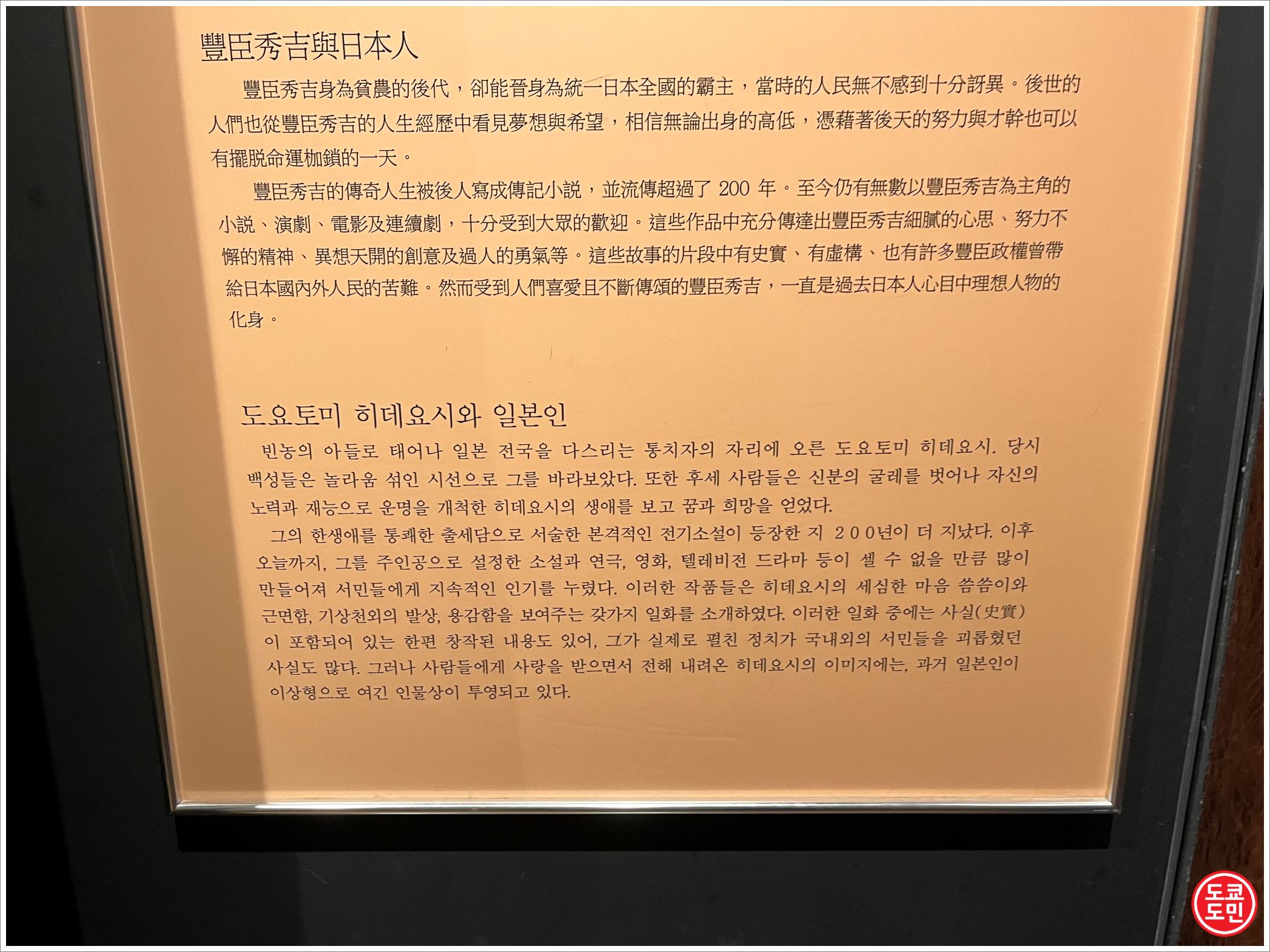 7층에는 "도요토미 히데요시"의 생애를 이런 화면을 통해 1~2분의 영상이 나오는데, 이렇게 단계적으로 영상을 보면서 이동하는데 이것만 제대로 보면 30분정도 걸립니다.