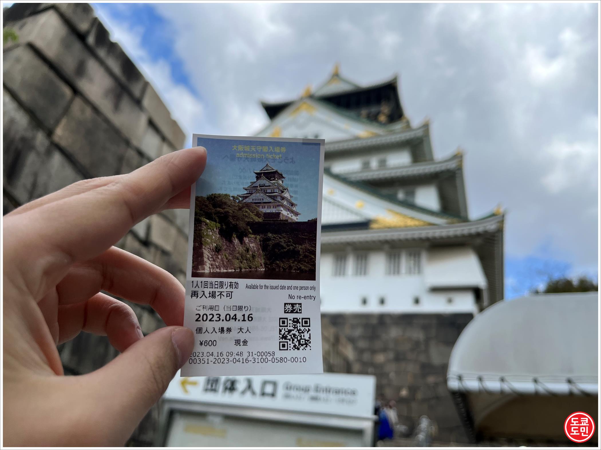 오사카성 천수각 입장료 : 600엔 (2023년 4월기준, 대인 요금).