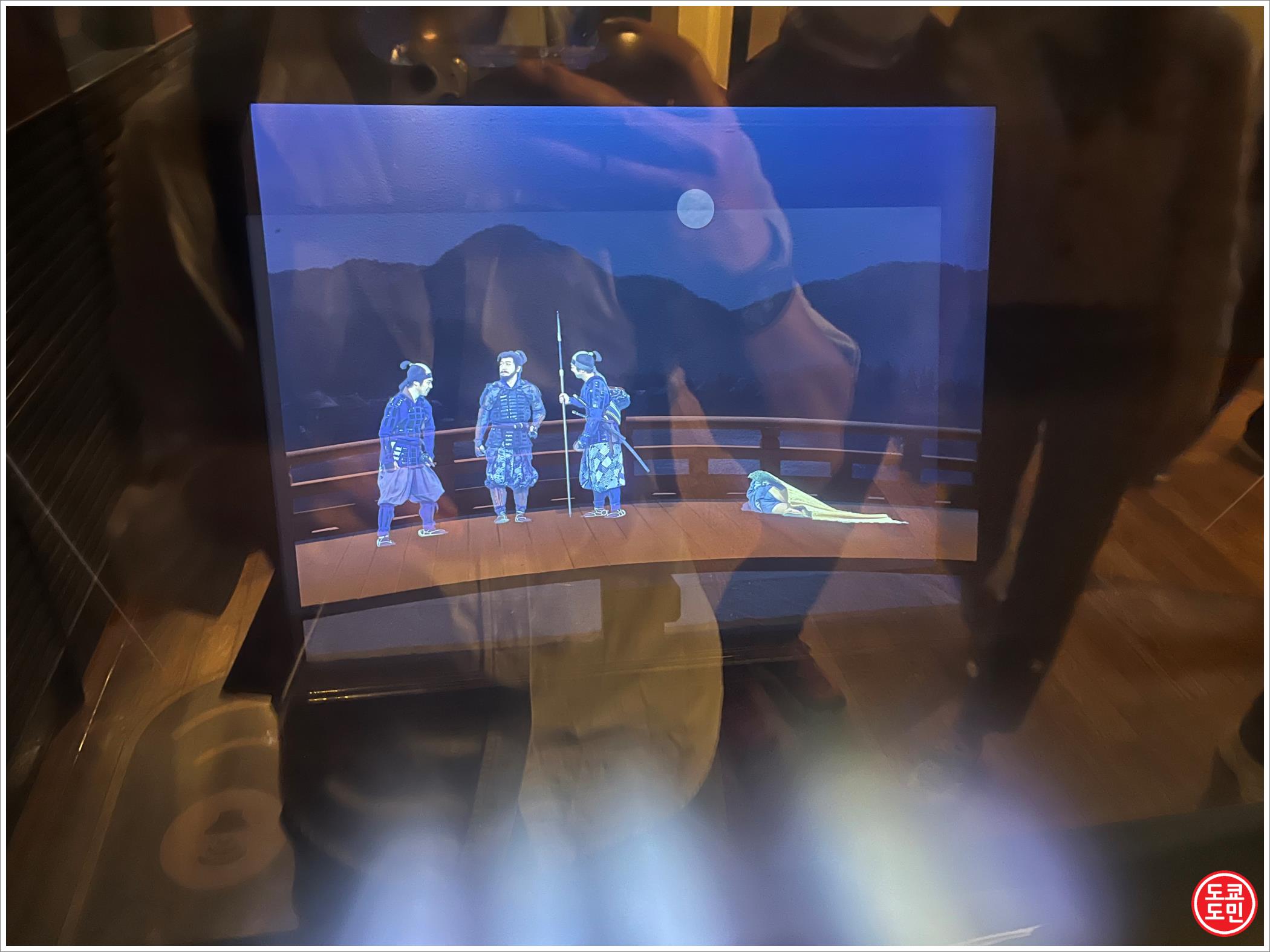 7층에는 "도요토미 히데요시"의 생애를 이런 화면을 통해 1~2분의 영상이 나오는데, 이렇게 단계적으로 영상을 보면서 이동하는데 이것만 제대로 보면 30분정도 걸립니다.