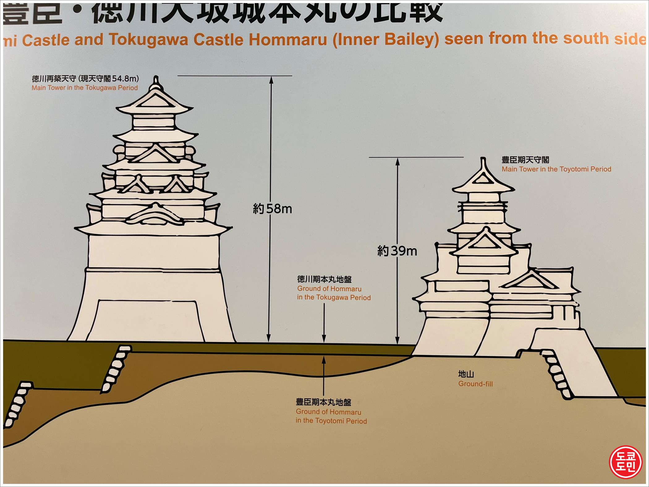 도쿠가와 이에야스가 새로 오사카 성을 세울때 원래의 오사카성보다 땅 높이도 더 높게!