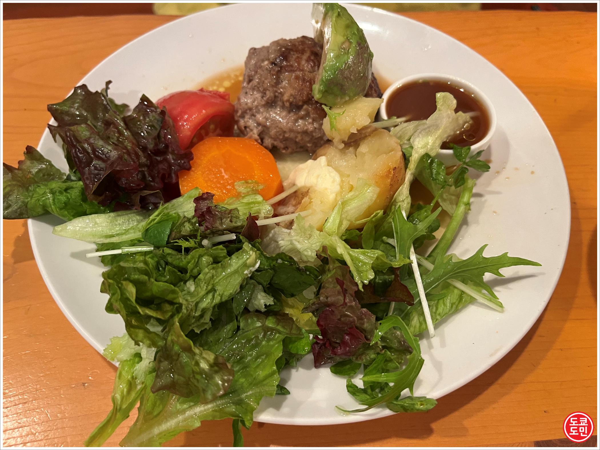 함박스테이크가 약간 큰 고기도 들어있어서 식감이 재미있고, 맛있었습니다.