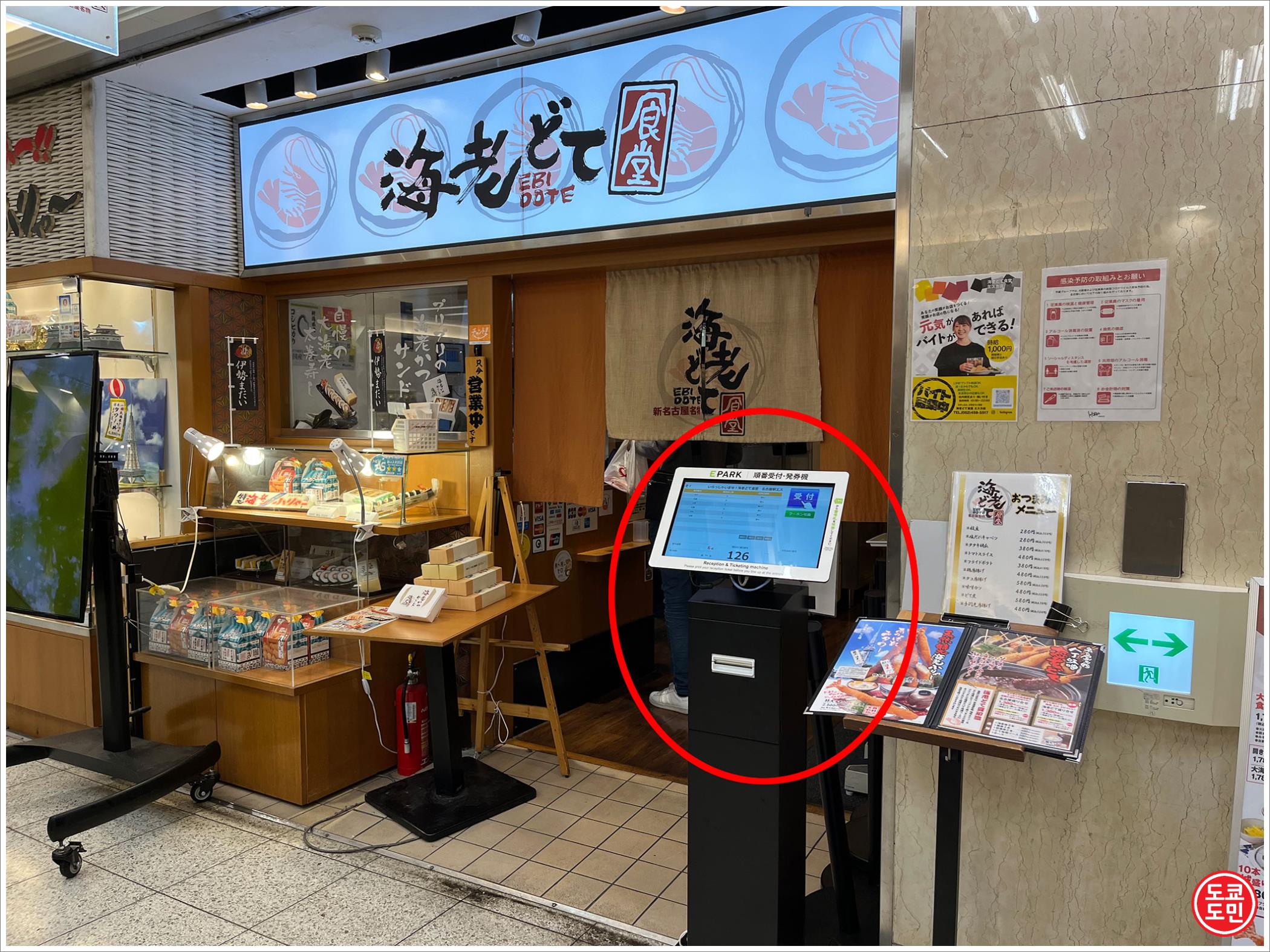 나고야의 명물 먹거리 중 하나인 새우튀김 맛집 "에비도테 쇼쿠도(海老どて食堂)".