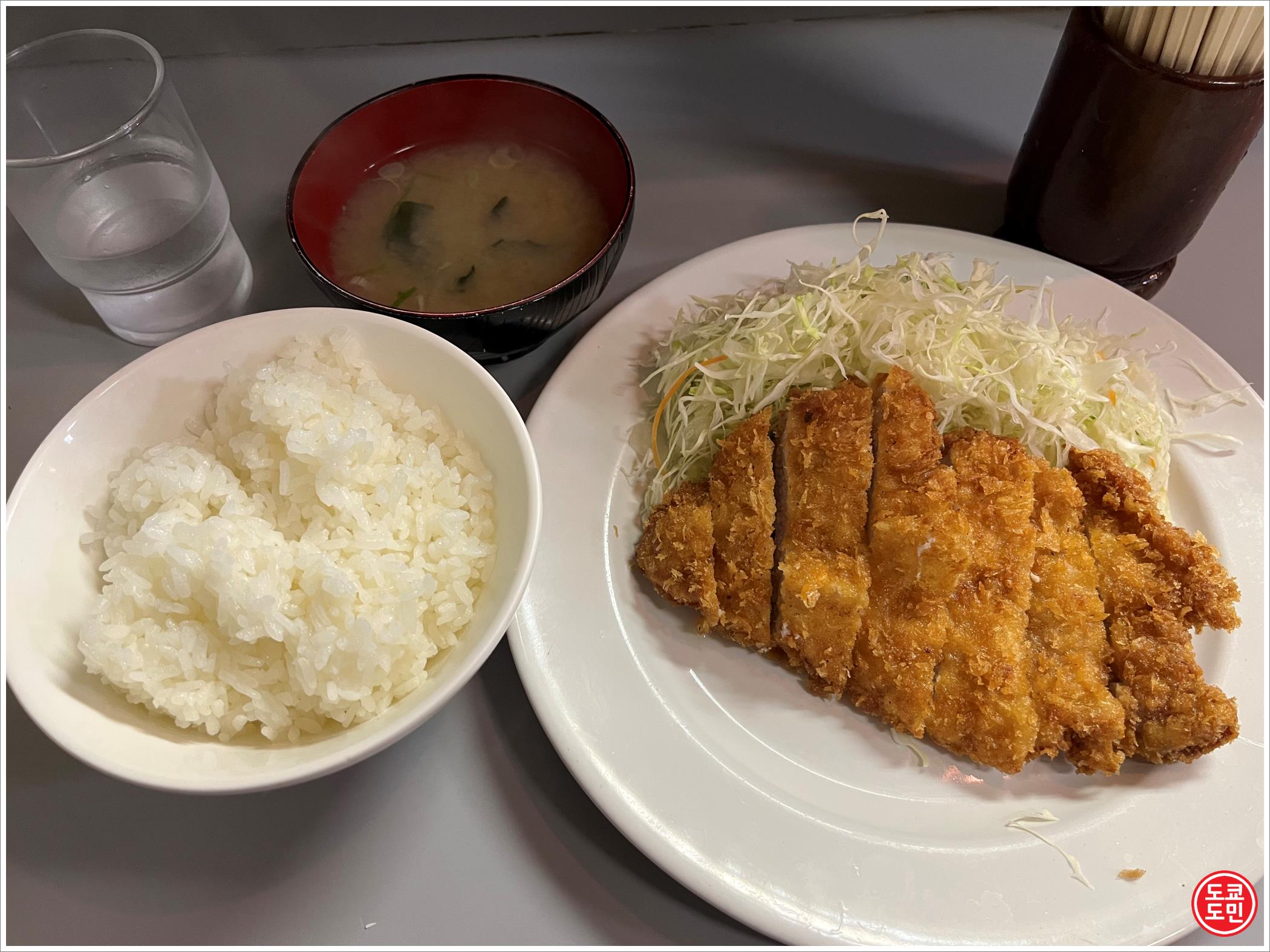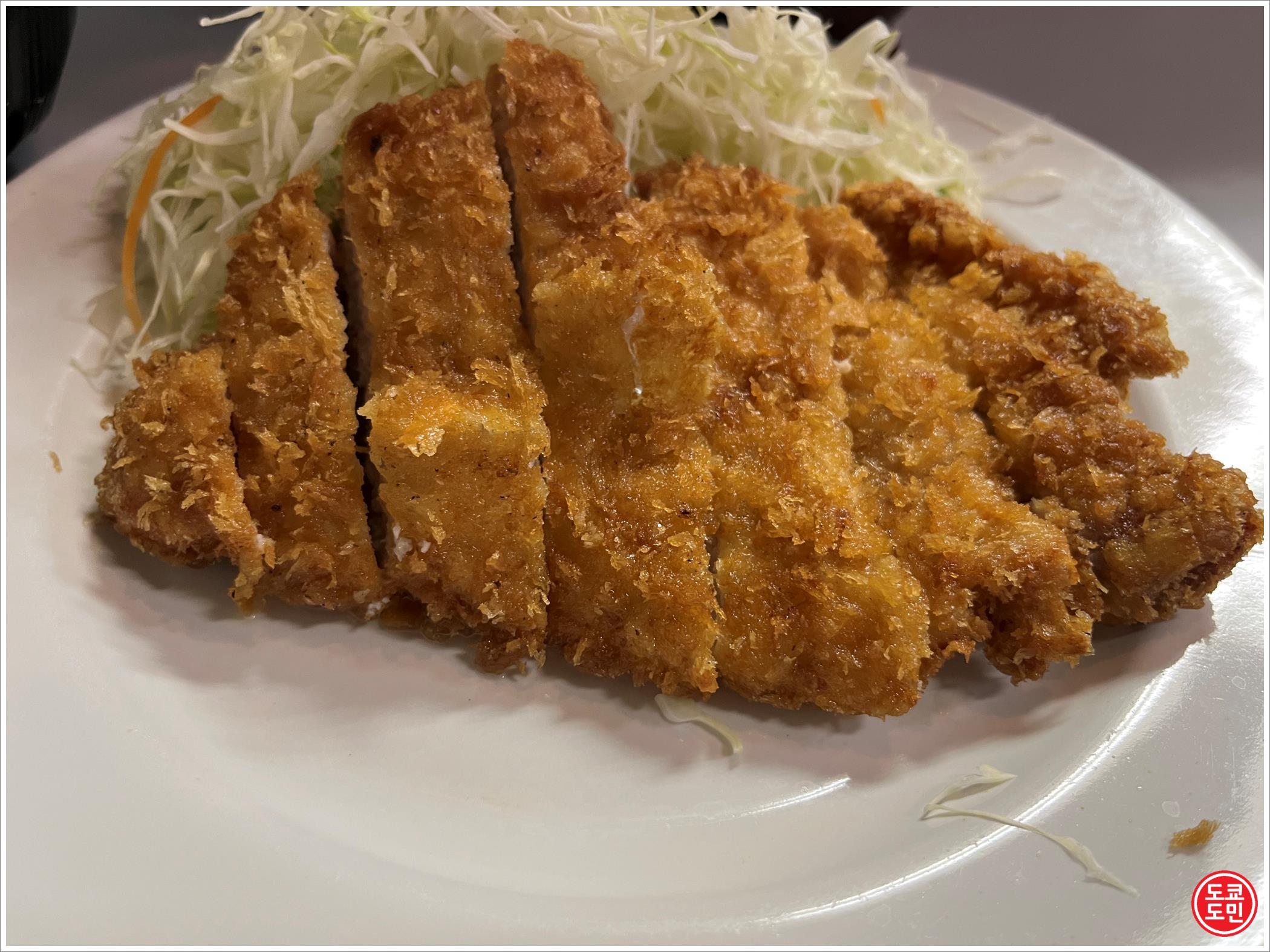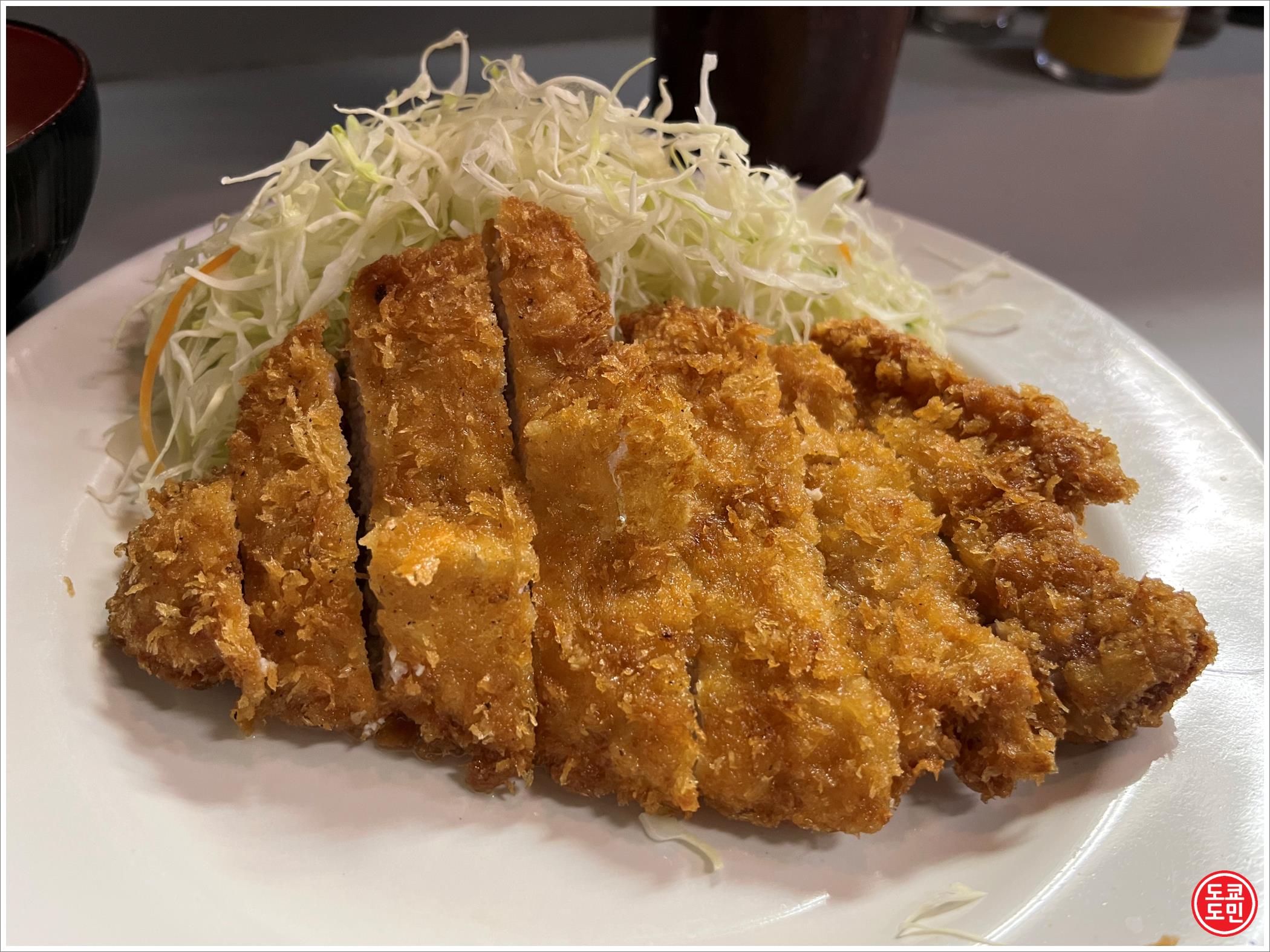 엄청 두껍지도 않고, 엄청 얇지도 않고 적당히 얇은 돈카츠에 아주 오래된 가게로 겉보기에는 보통이어도 맛은 맛있었습니다.