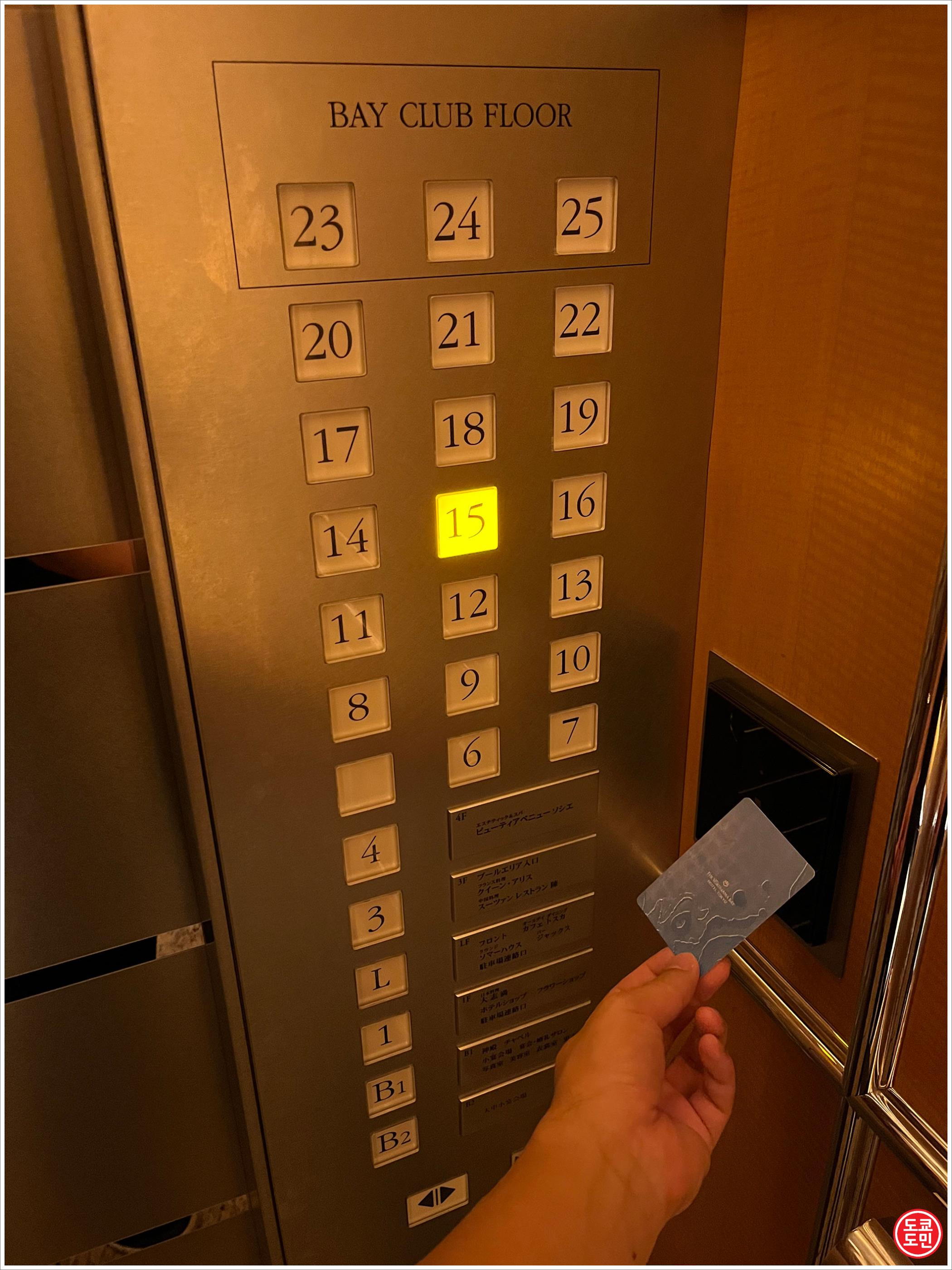 카드키를 엘리베이터에 인식시켜야 투숙하는 객실이 있는 층으로 이동할 수 있었습니다.