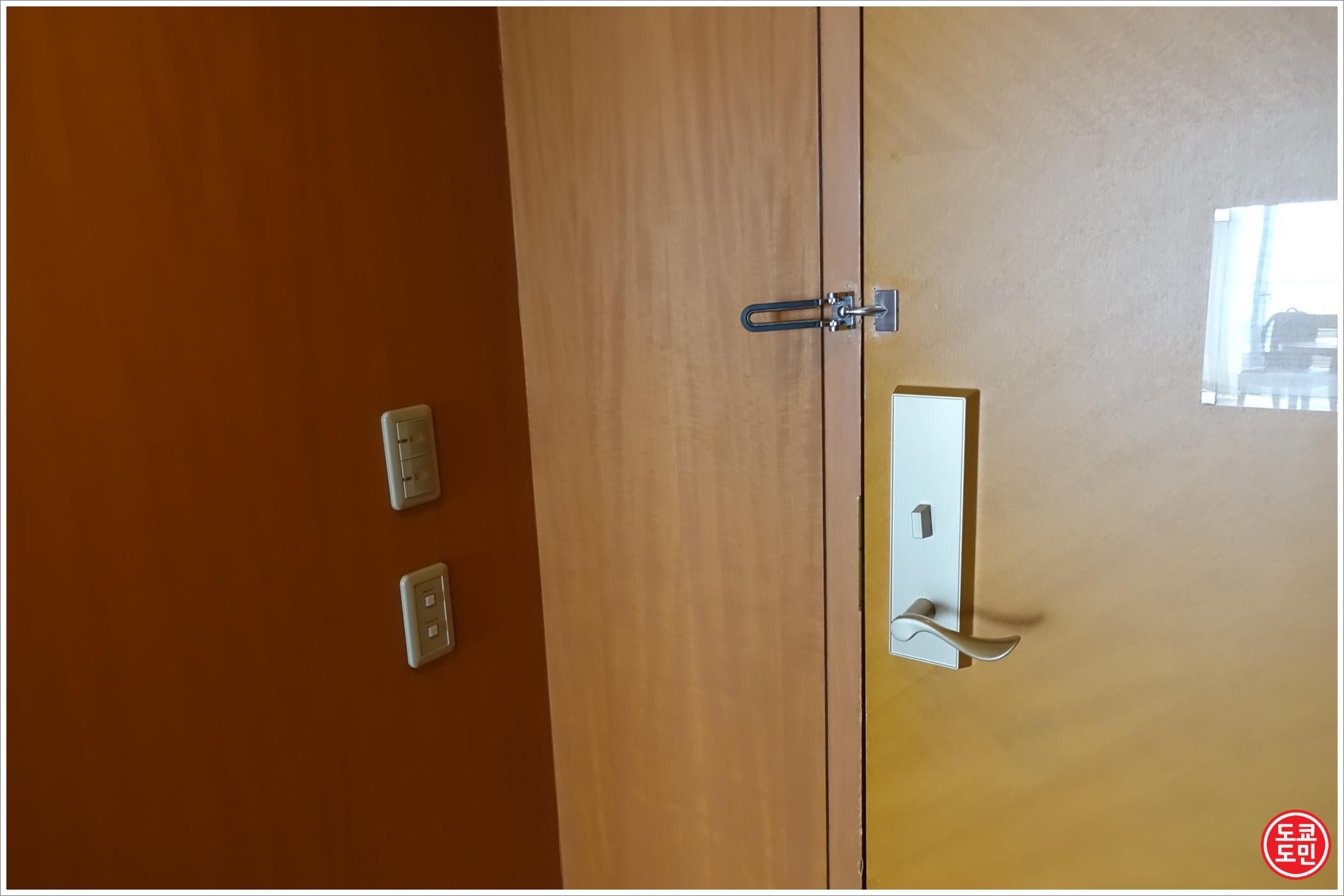 사진엔 조금 알아보기 힘들거 같은데 방안에서의 잠금장치 부분이 새로 달렸더군요.