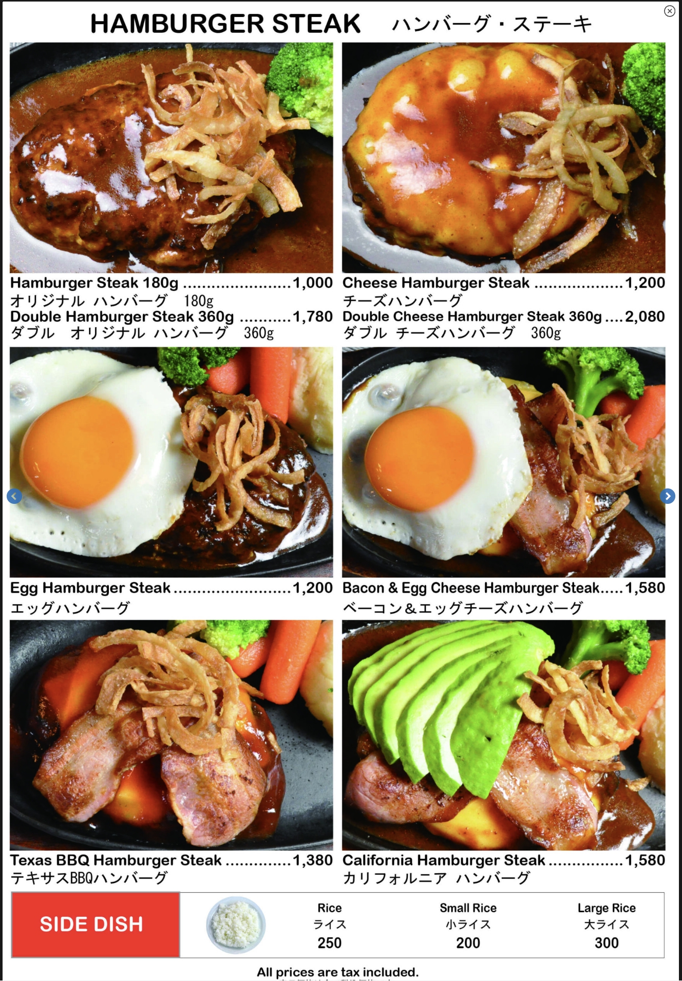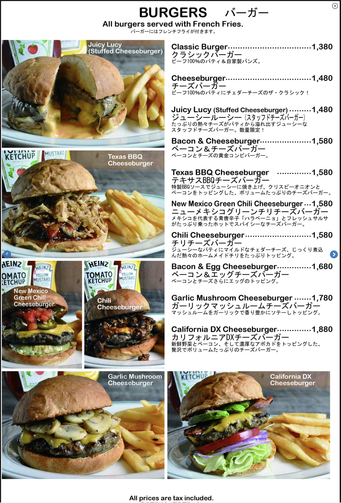 햄버거의 가격은 1600엔정도 (약 16,000원, 2023년 6월 기준)