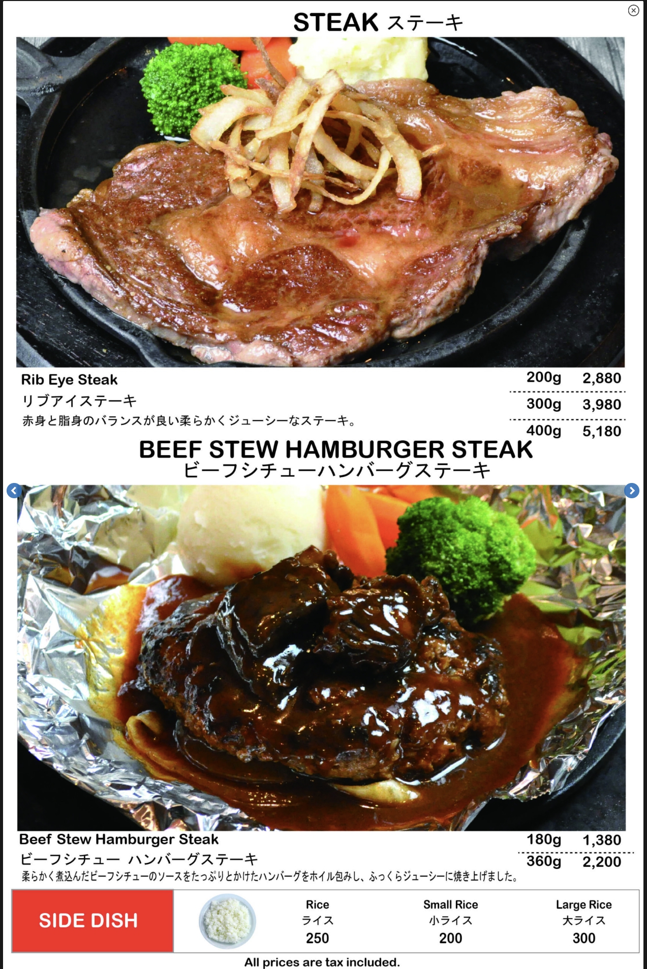 저는 함박 스테이크를 360g으로 주문했습니다.