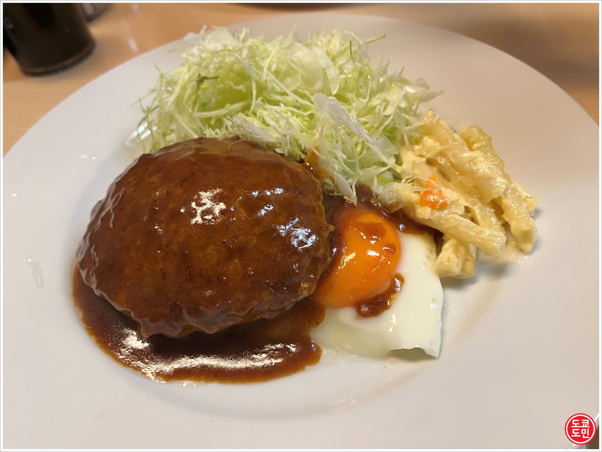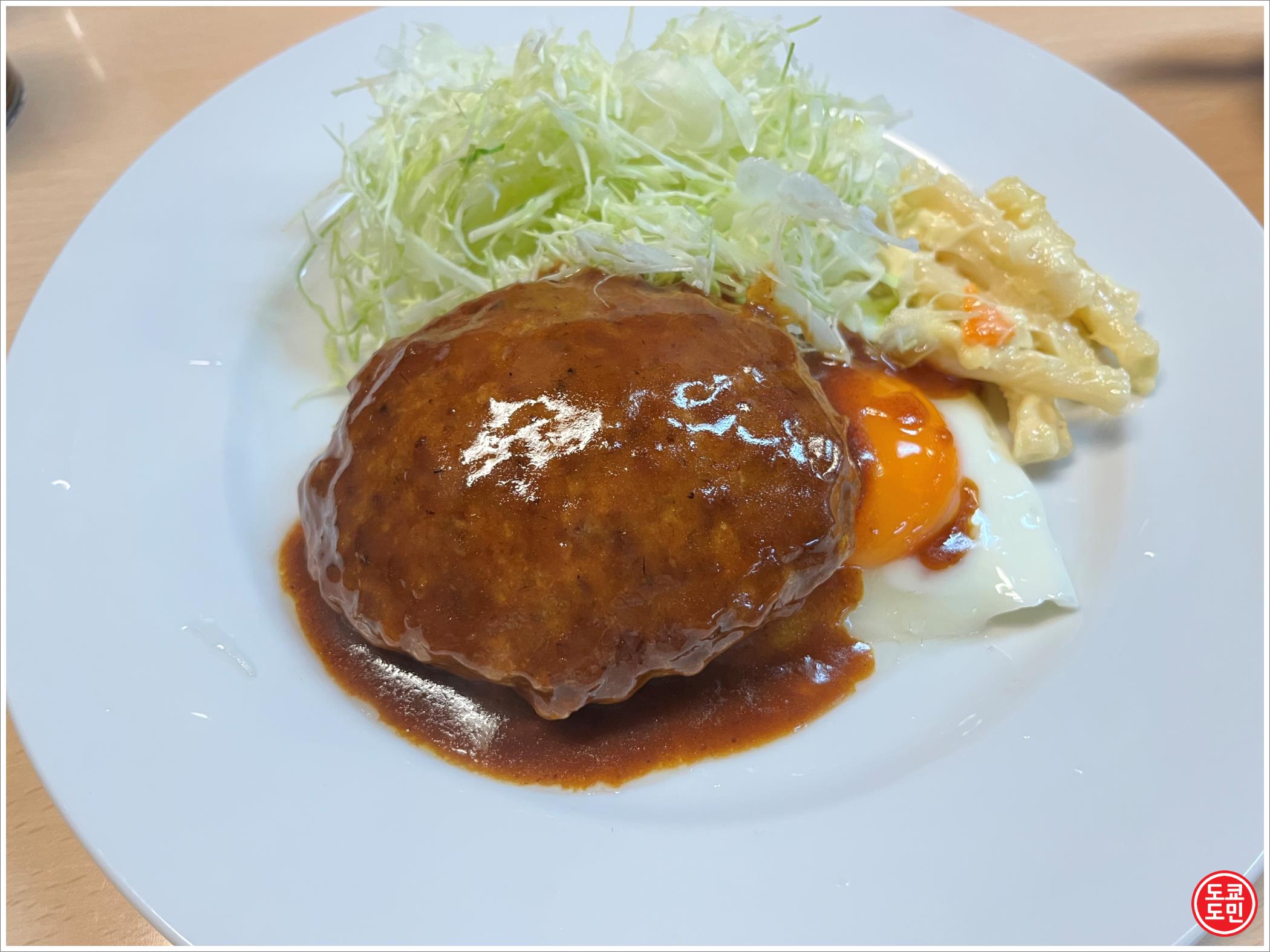 함박스테이크와 달걀 후라이가 같이 나옵니다.