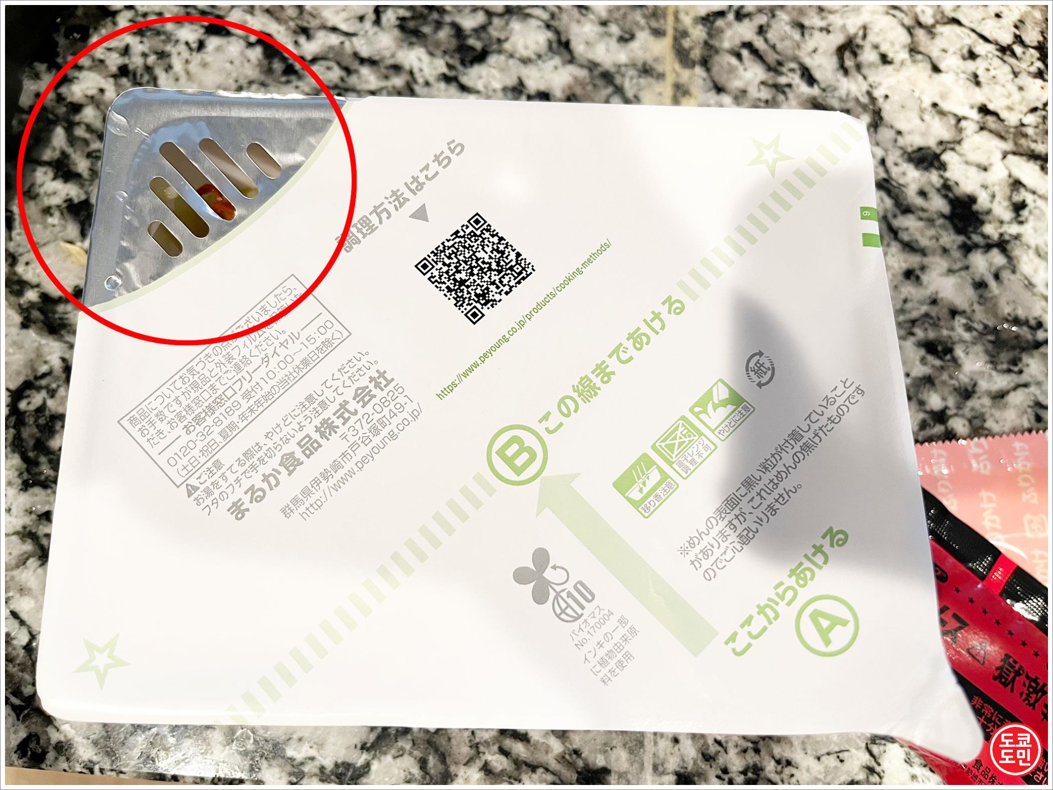 3분이 지나면 저 부분의 스티커를 떼어내서 물을 다 버려줍니다.