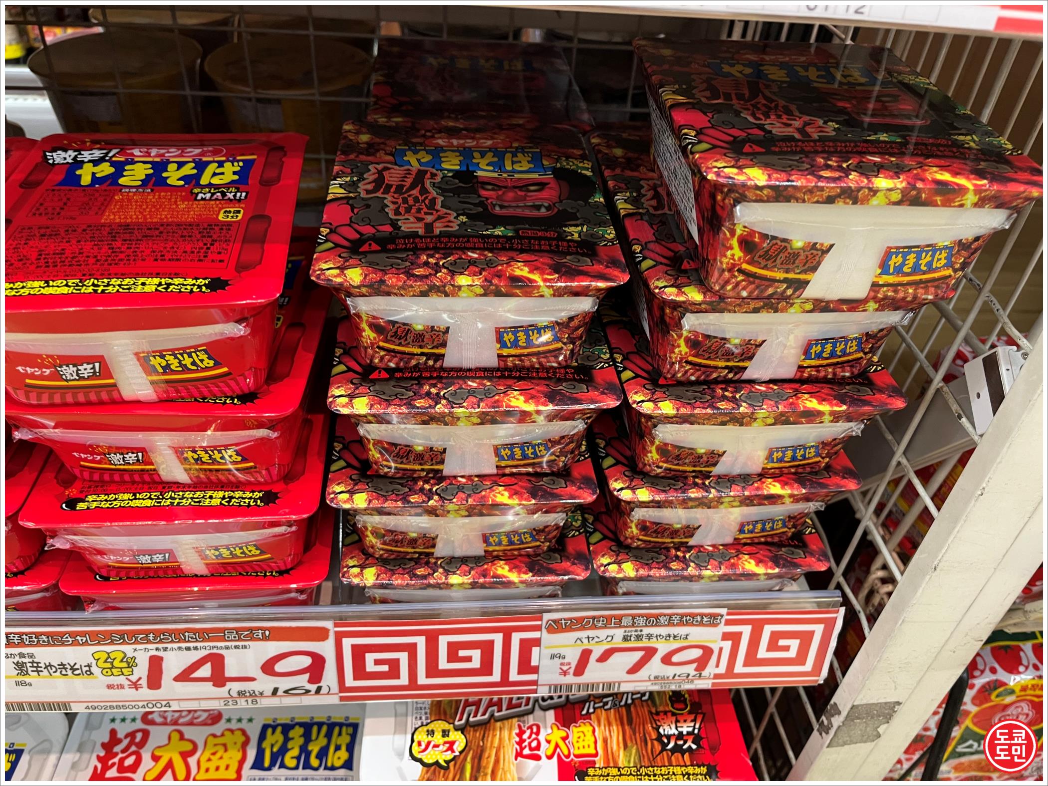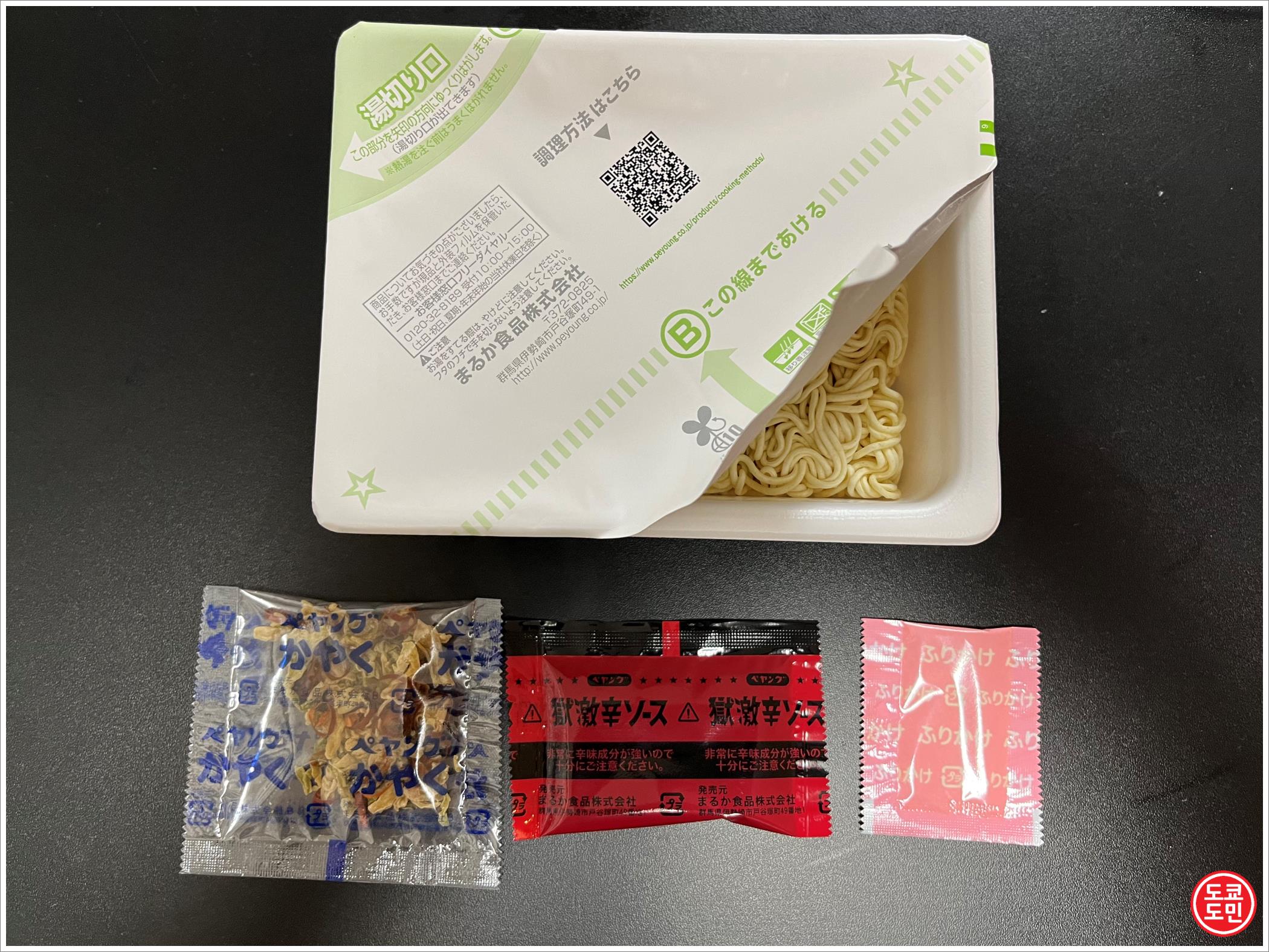 처음에는 매운맛도 1종류였는데, 점점 매운맛이 강한 야키소바를 내놓더니 매운맛도 여러종류가 있는데, 위의 사진에서 빨간색은 초기에 나온 매운맛이라 가장 매운맛이 약합니다.