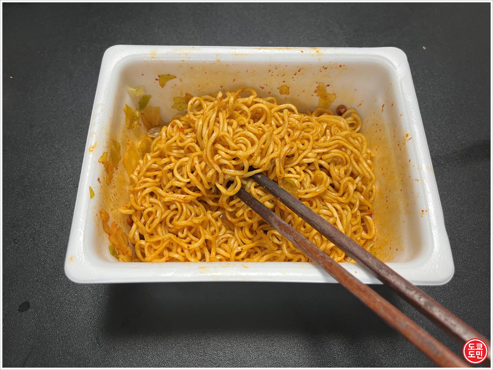 처음에는 매운맛도 1종류였는데, 점점 매운맛이 강한 야키소바를 내놓더니 매운맛도 여러종류가 있는데, 위의 사진에서 빨간색은 초기에 나온 매운맛이라 가장 매운맛이 약합니다.