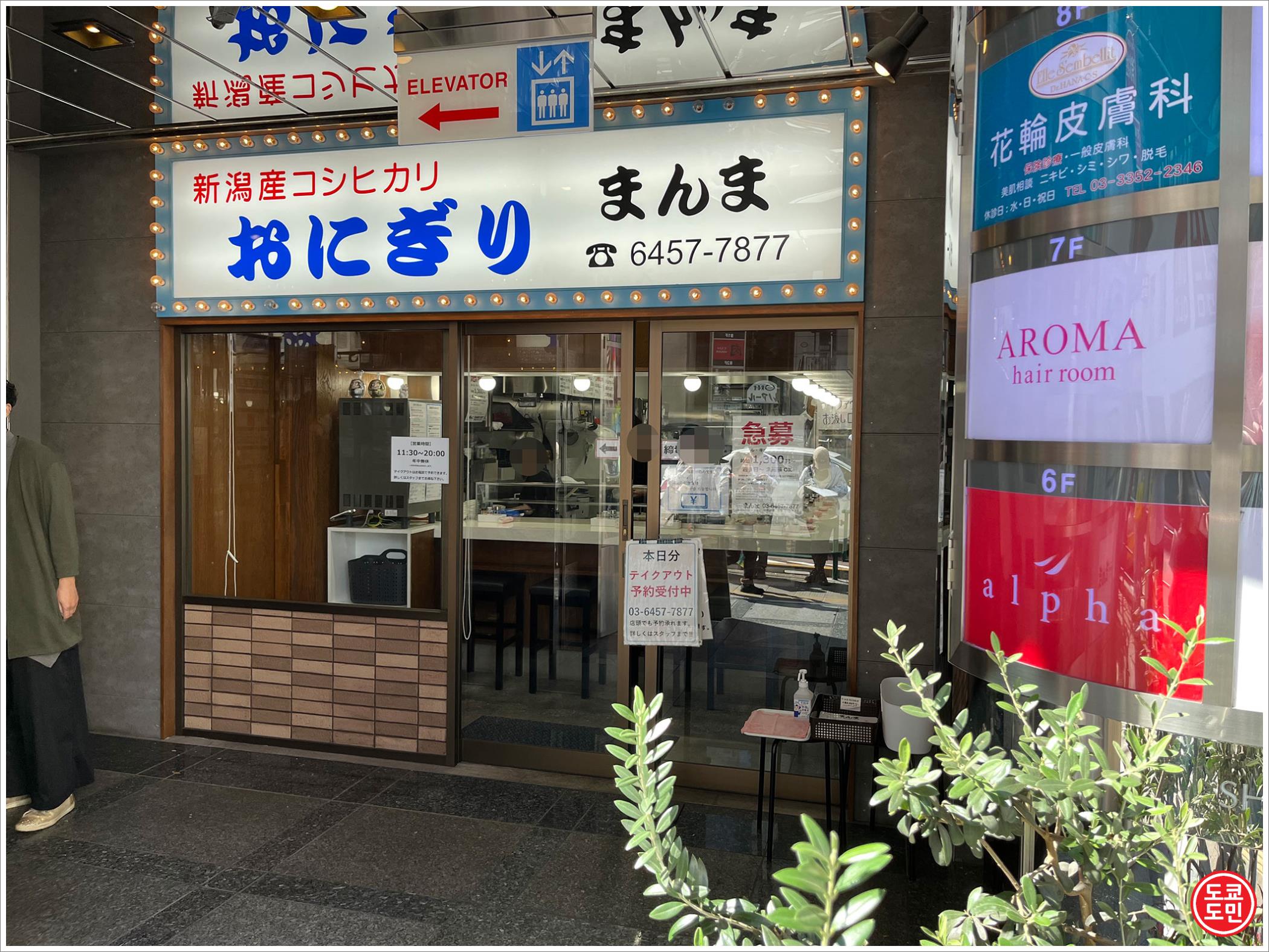 가게 1층에 있는 오니기리 맘마(おにぎり まんま) 외관입니다.