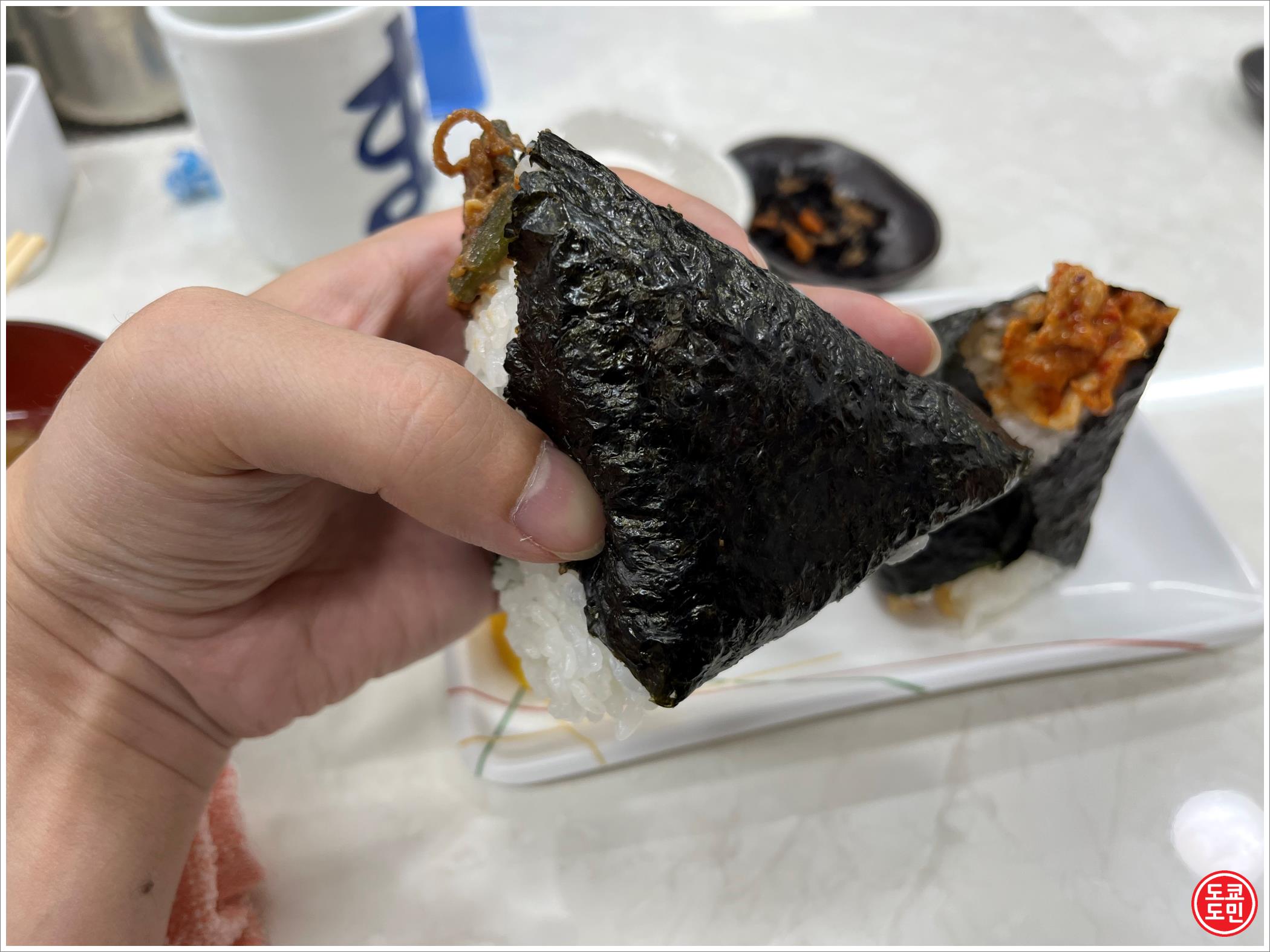 그냥 오니기리 2개이상, 미소시루를 같이 주문하니 스페셜 셋트라고 말하지 않아도 알아서 삶은 달걀이랑 반찬을 주더라고요.