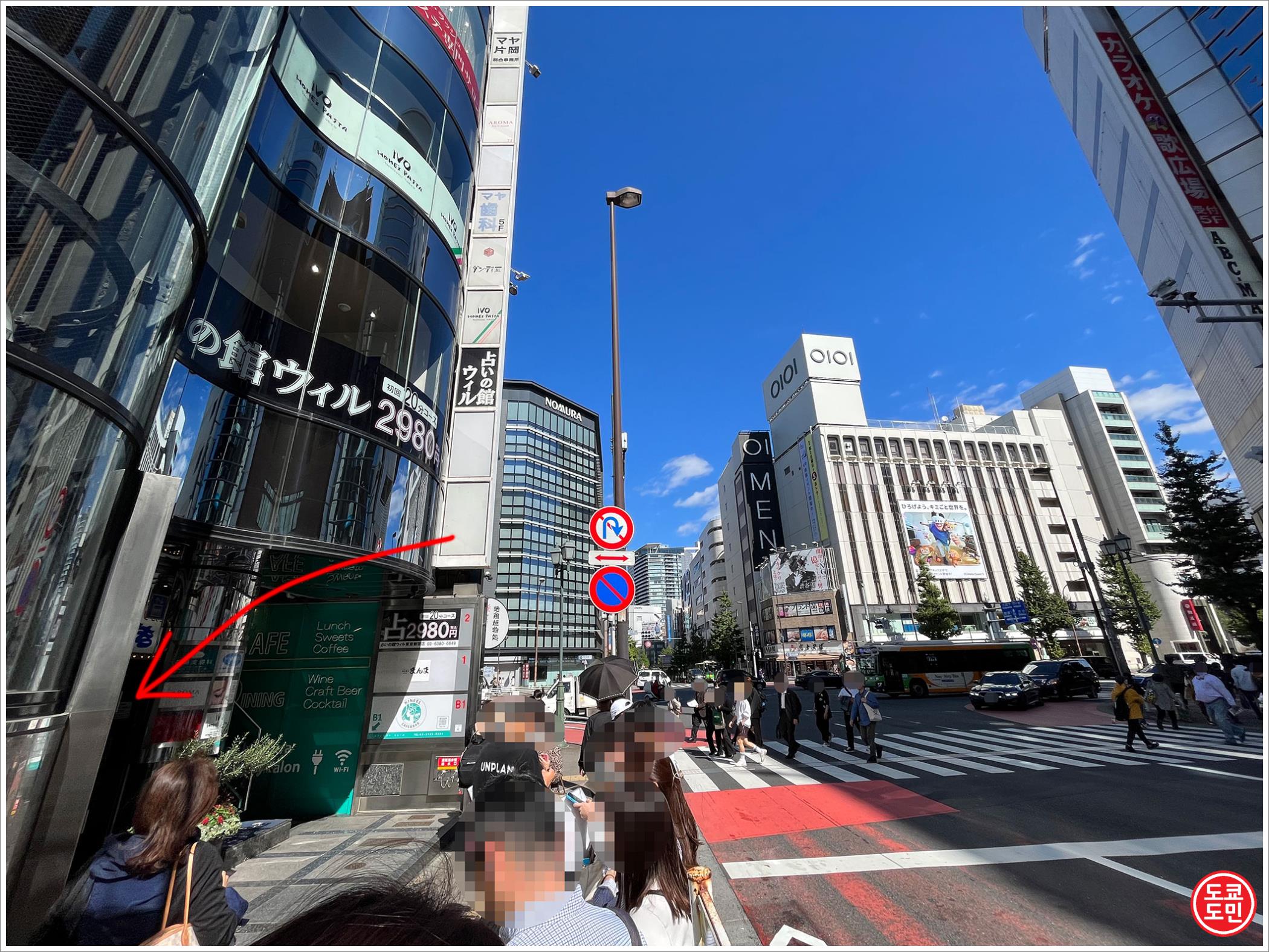신주쿠 이세탄 백화점 뒤에 있는 큰 도로가 모퉁이에 있습니다.