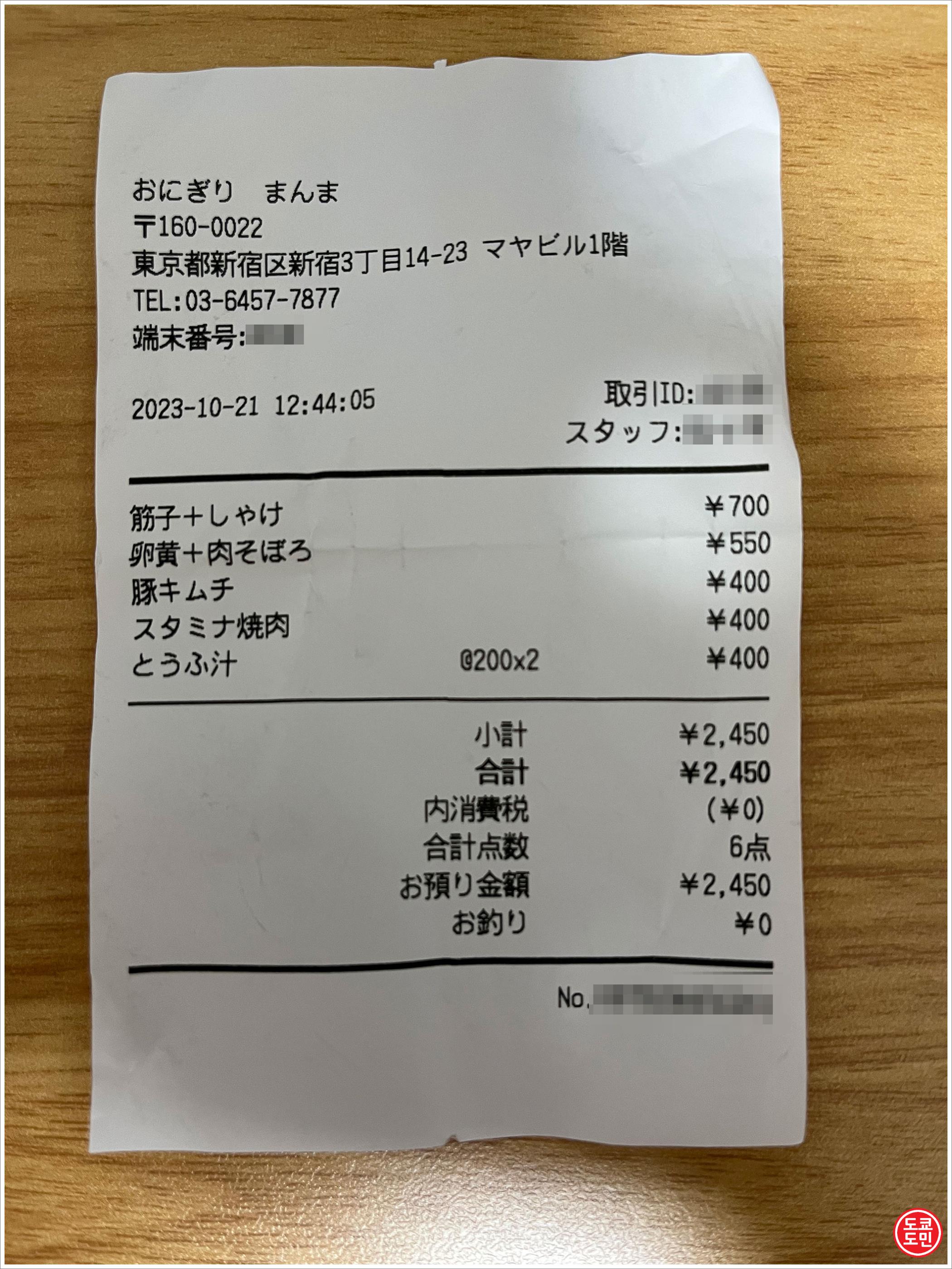 도쿄 신주쿠에 있는 오니기리(주먹밥) 맛집!!
