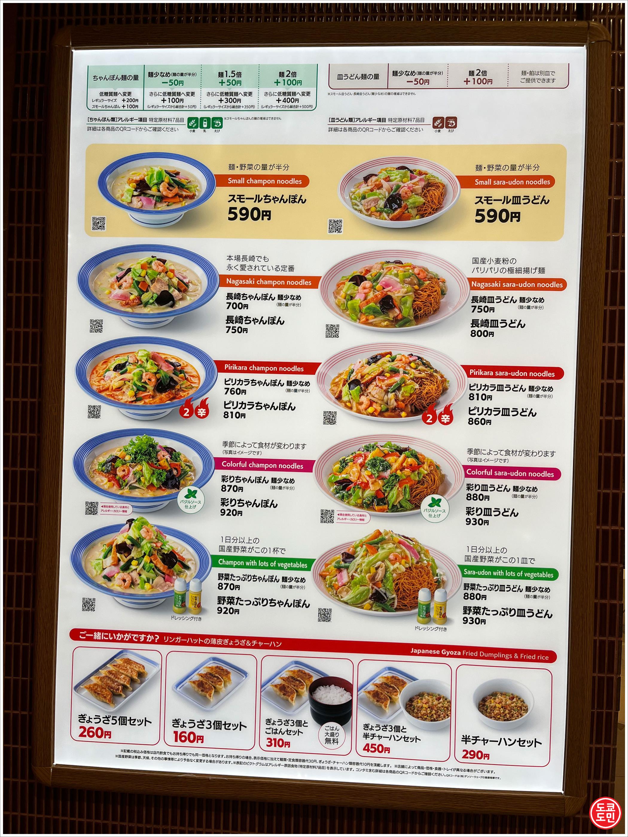 링거헛(링거햇, リンガーハット) 메뉴입니다. (2023년 11월 기준)