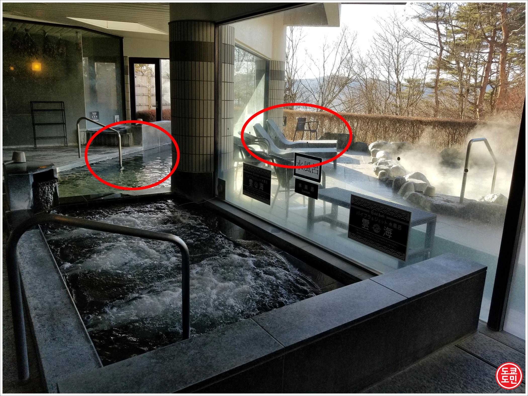 지하 1층에 있는 온천시설이지만 산의 경사로 인해 위의 사진을 보면 아시겠지만 지상입니다.