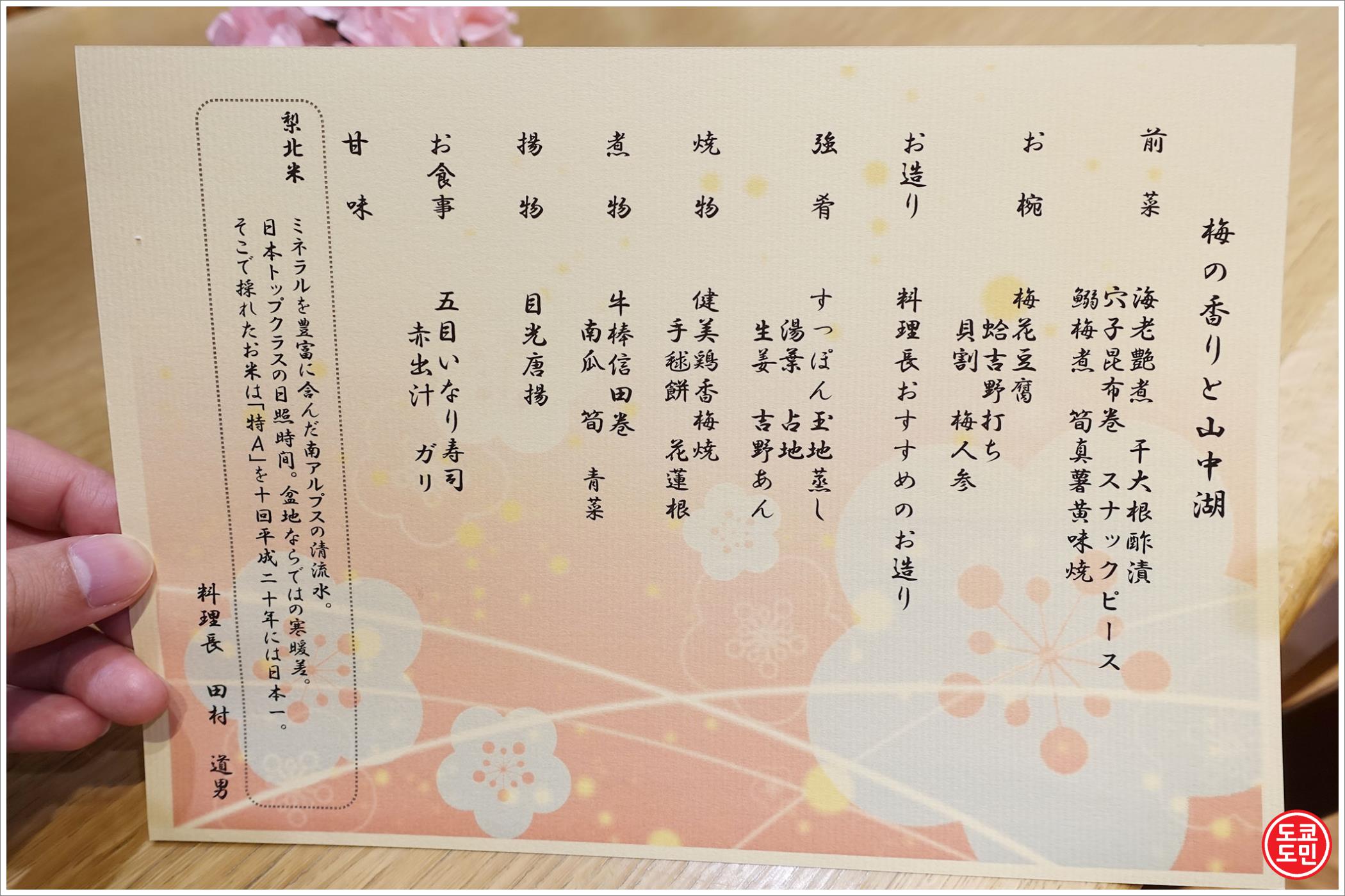 자리에 앉으니 이번에 나오는 코스요리의 순서가 적혀 있었습니다.