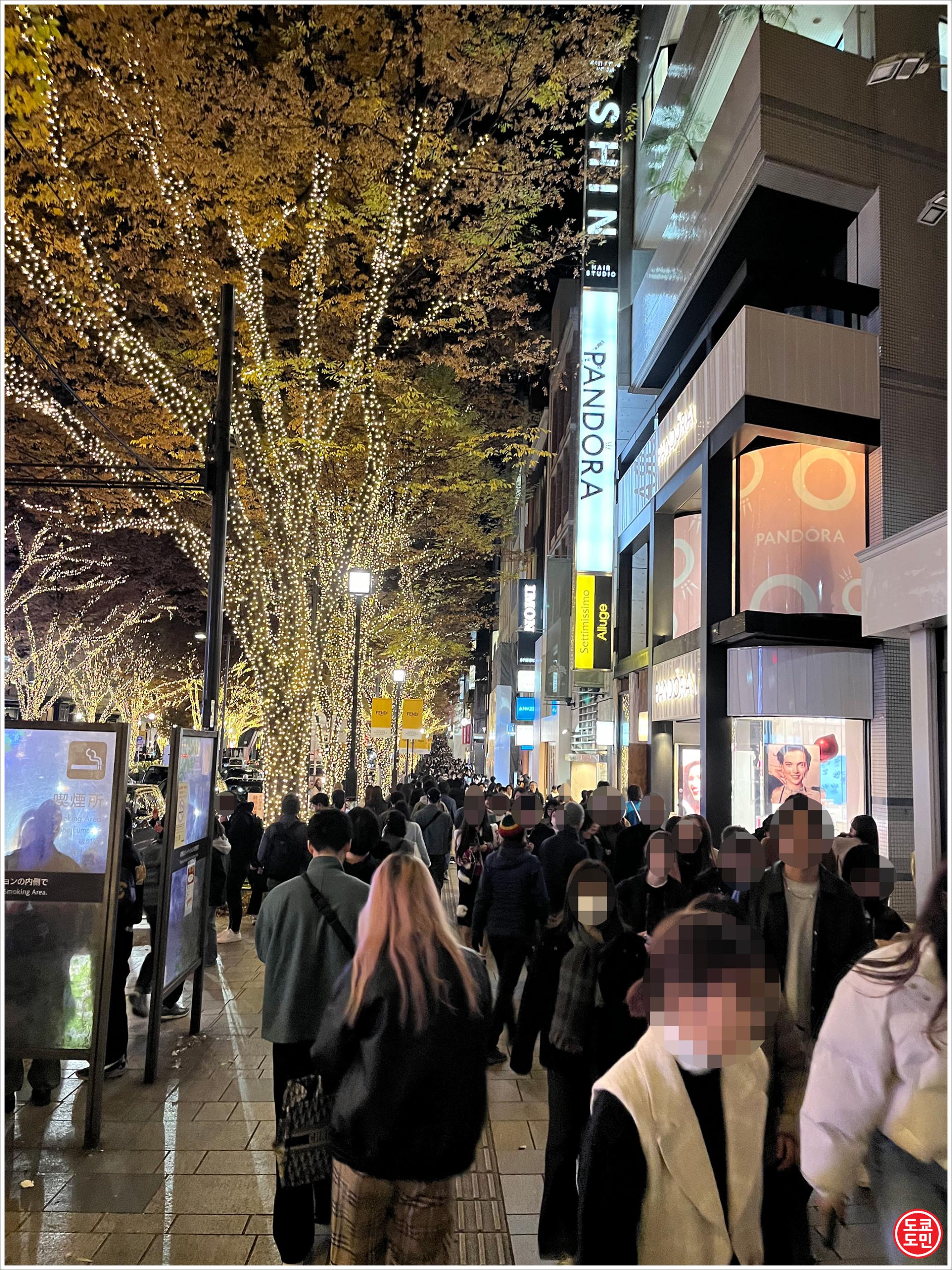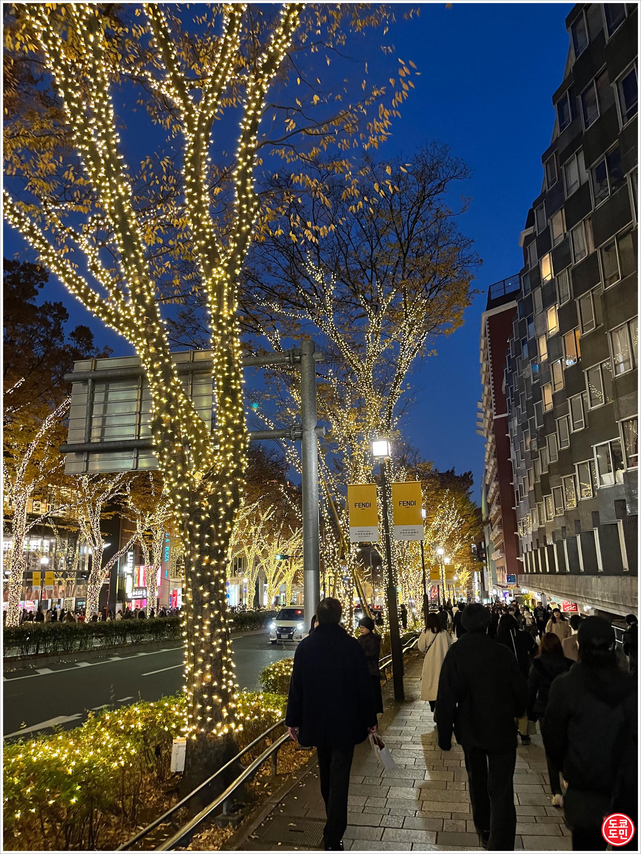 약 1.1km 의 도로에 오모테산도 - 하라주쿠 까지 가로수에 일루미네이션이 되어 있습니다.