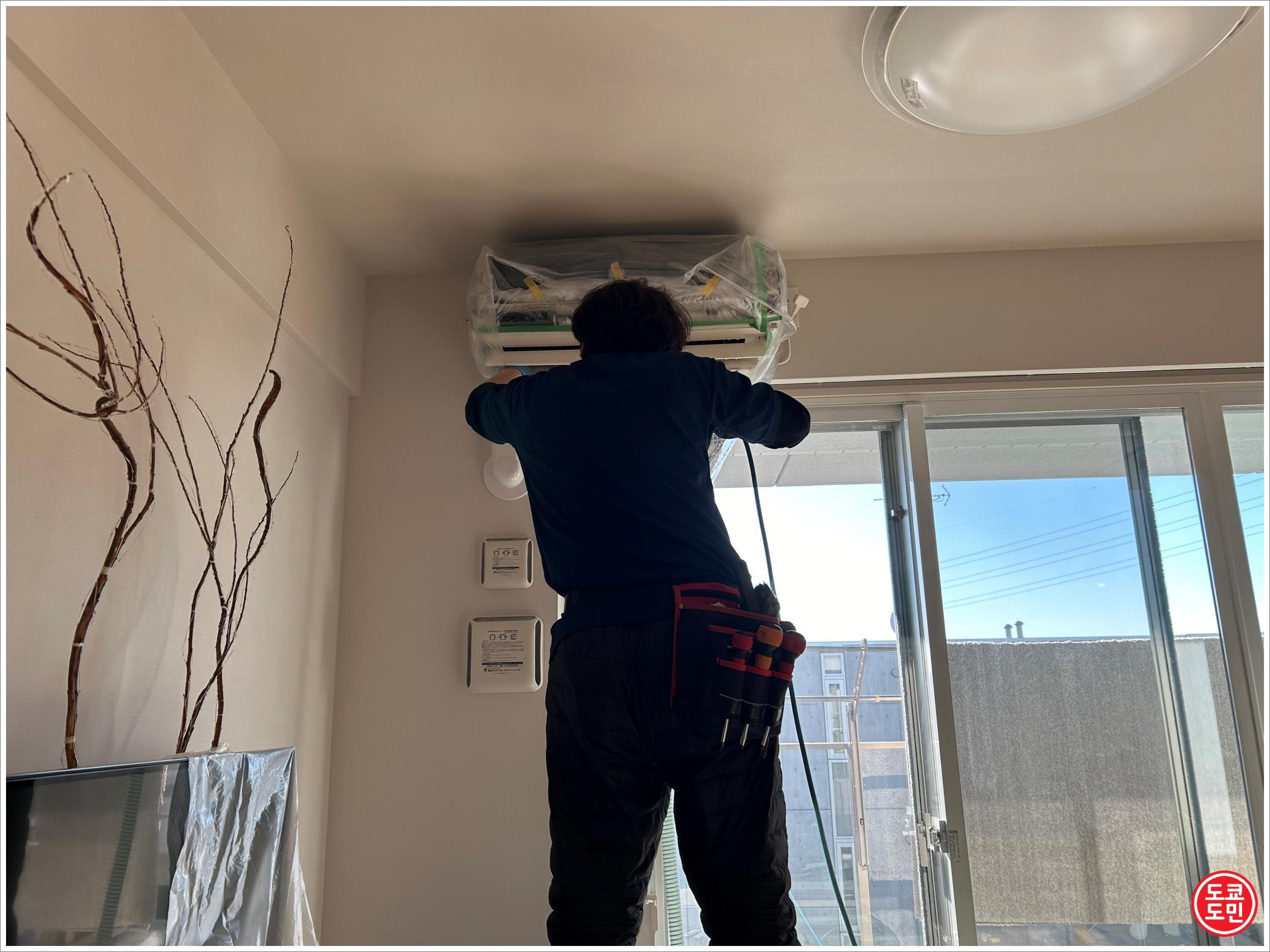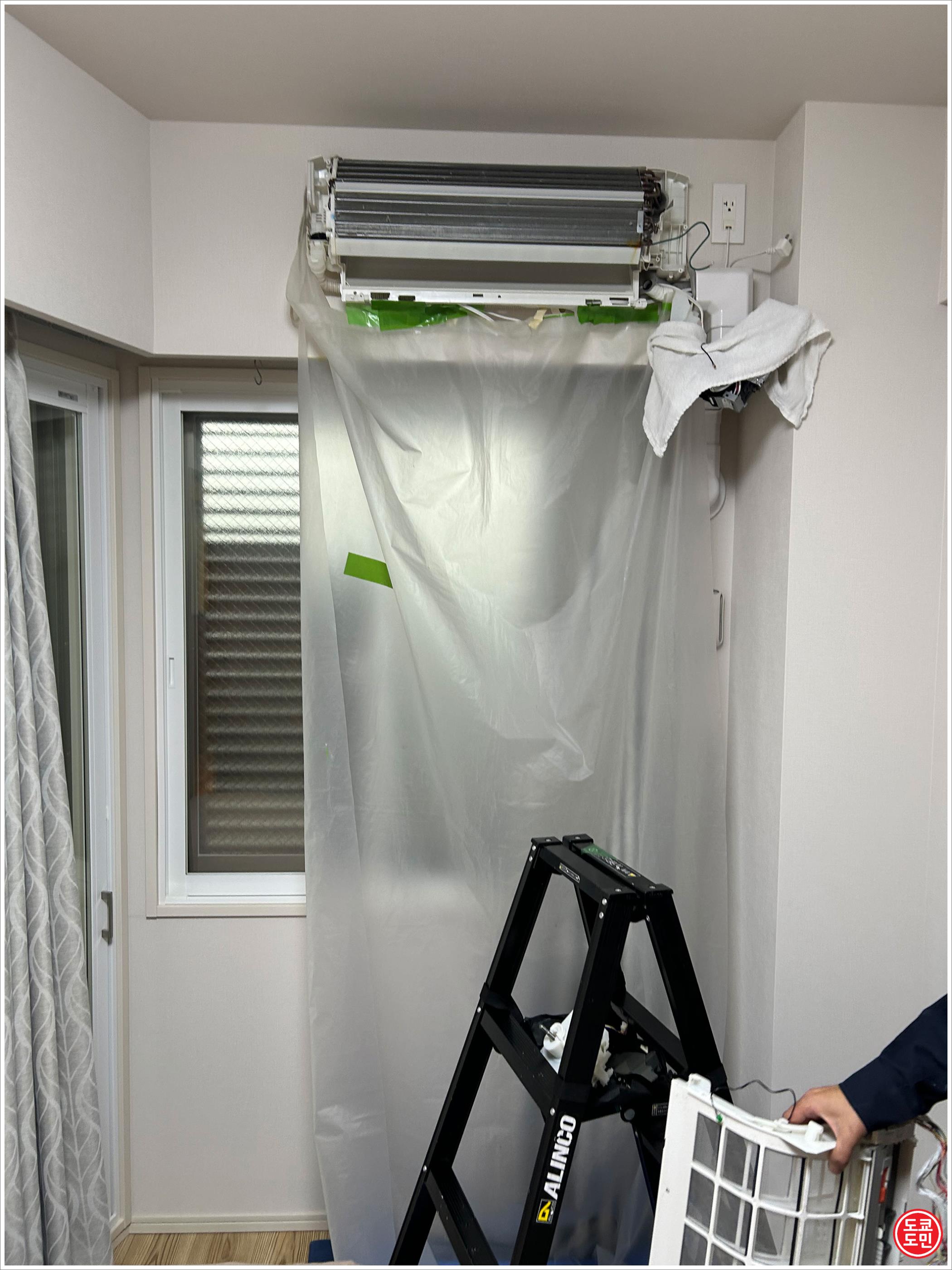 그런데 거실 에어콘 바람 나오는 곳을 보니 시꺼먼 먼지인지 곰팡이인지 조금 많이 붙어있어서 일본생활을 하면서 처음으로 에어콘 클리닝 서비스를 받아봤습니다.