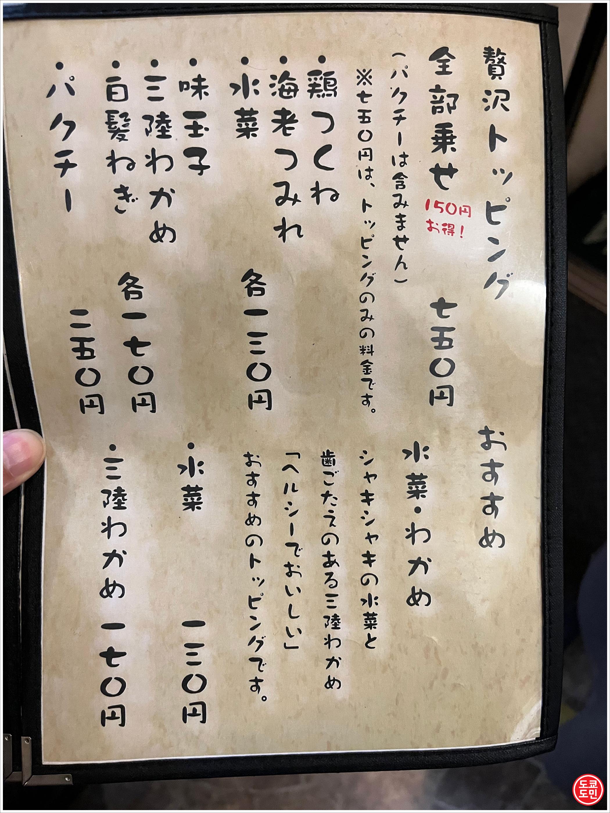 메뉴판에도 그때 그때 입하한 재료로 만들기 때문에 국물 맛이 날에 따라 다릅니다 라고 적혀 있습니다.
