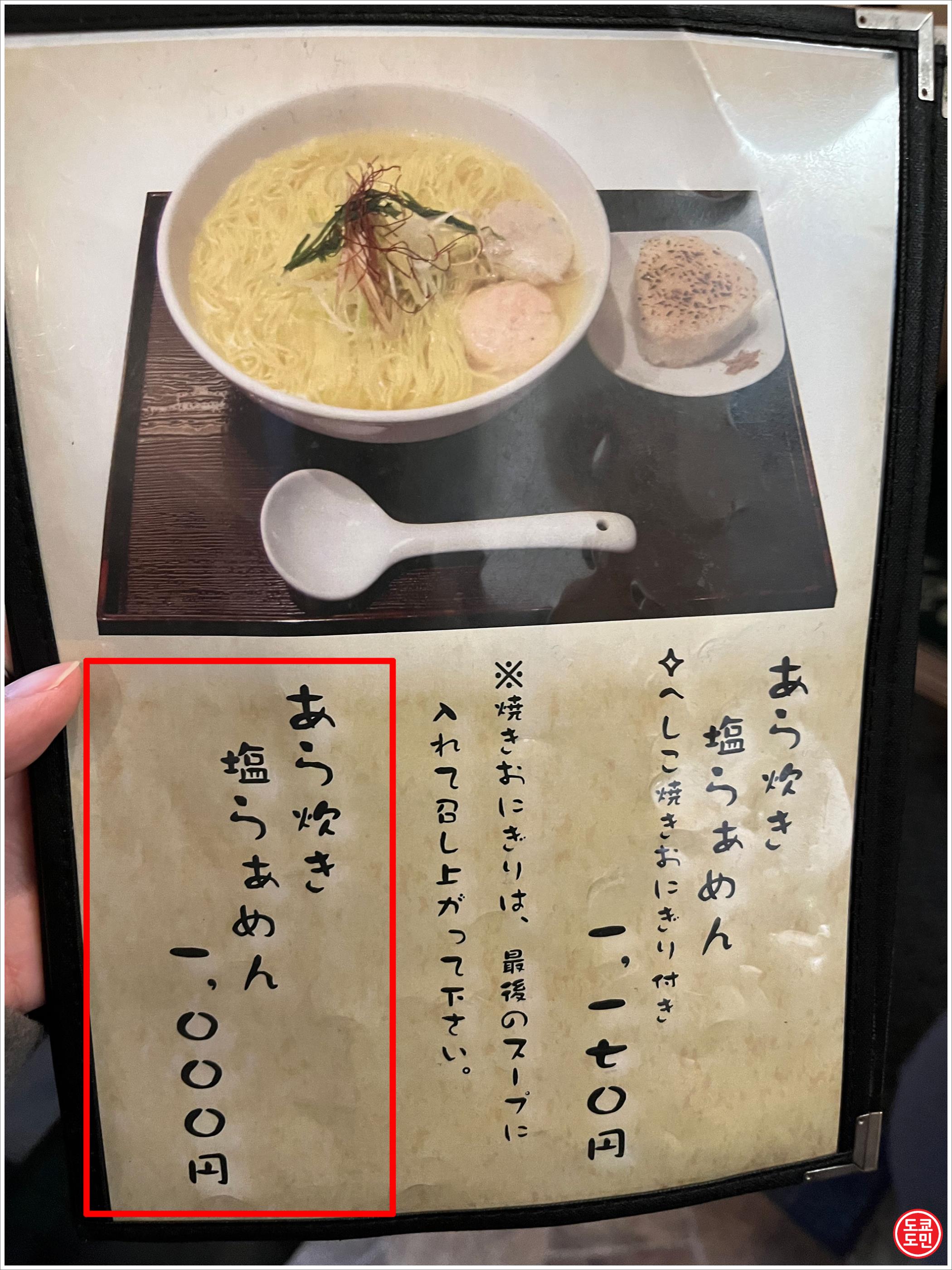 시오라멘 : 1000엔. (약 1만원)