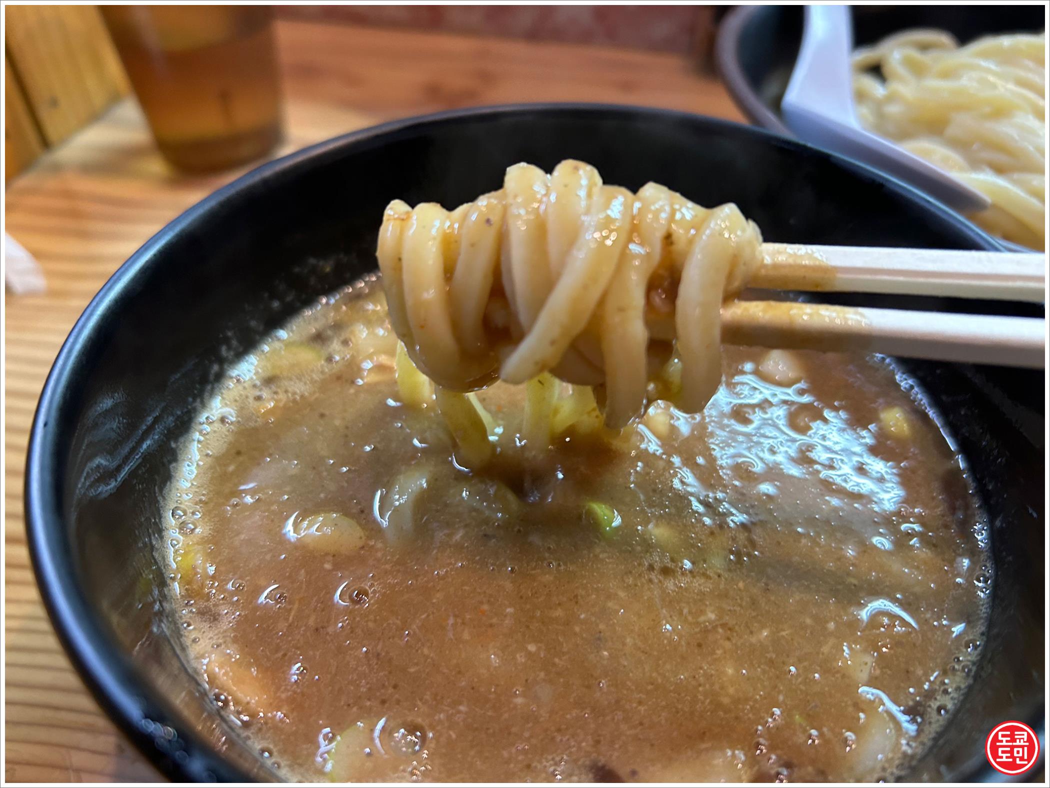면을 찍어 먹는 국물의 경우, 일반적인 츠케멘 가게에 비해 걸죽합니다.