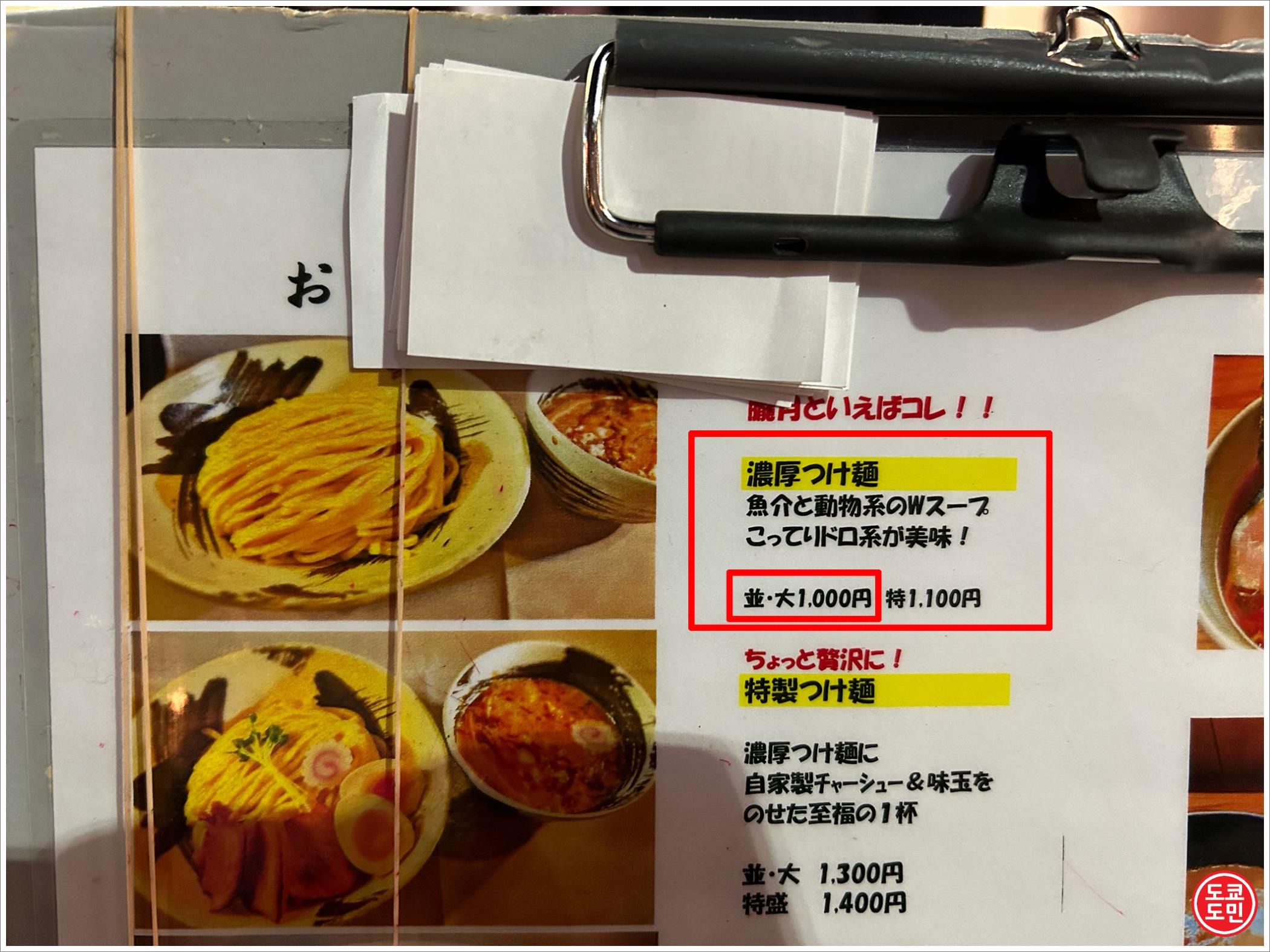 면의 양이 곱배기인 경우 : "토쿠세이 츠케멘 오오모리데"