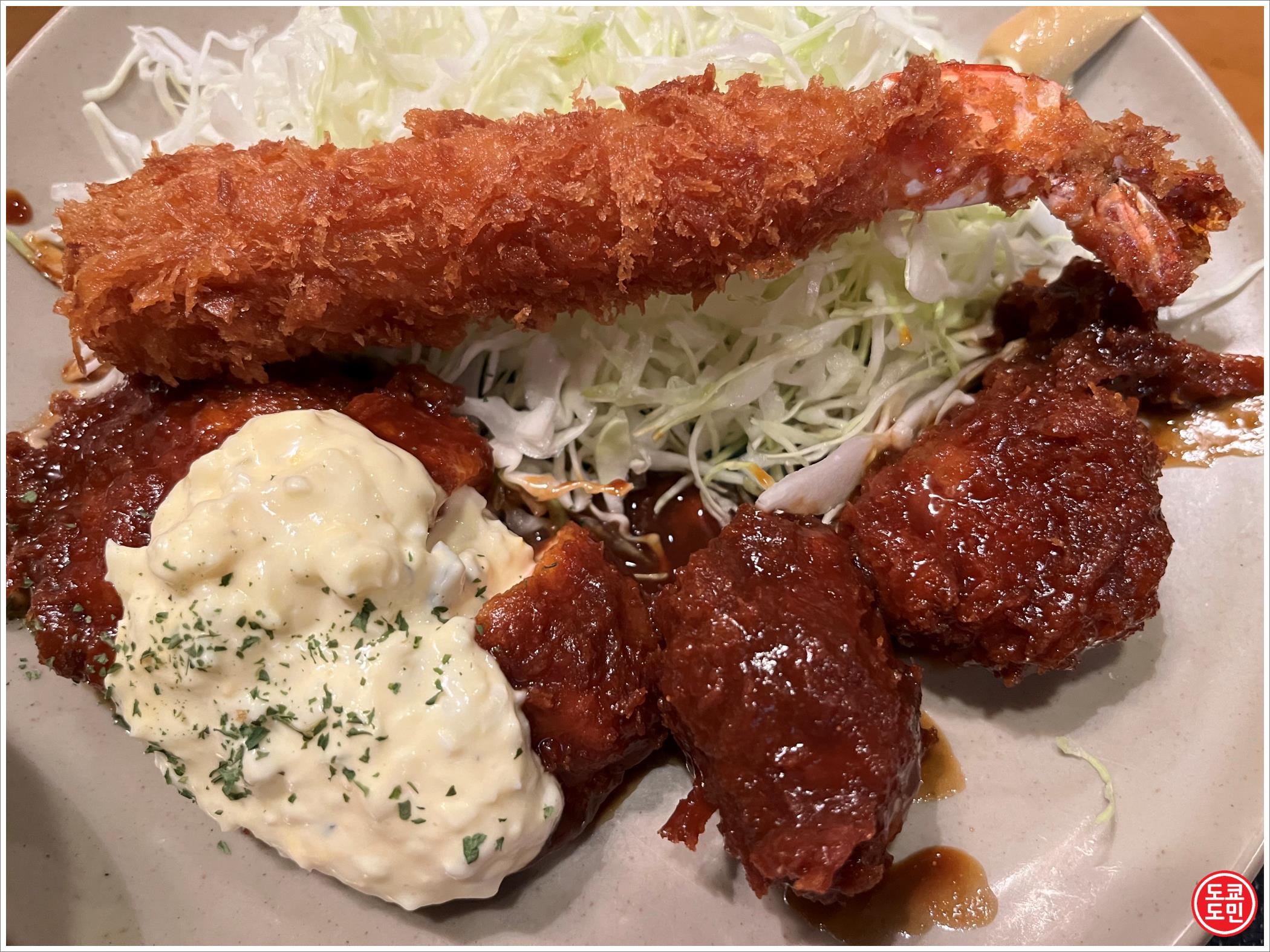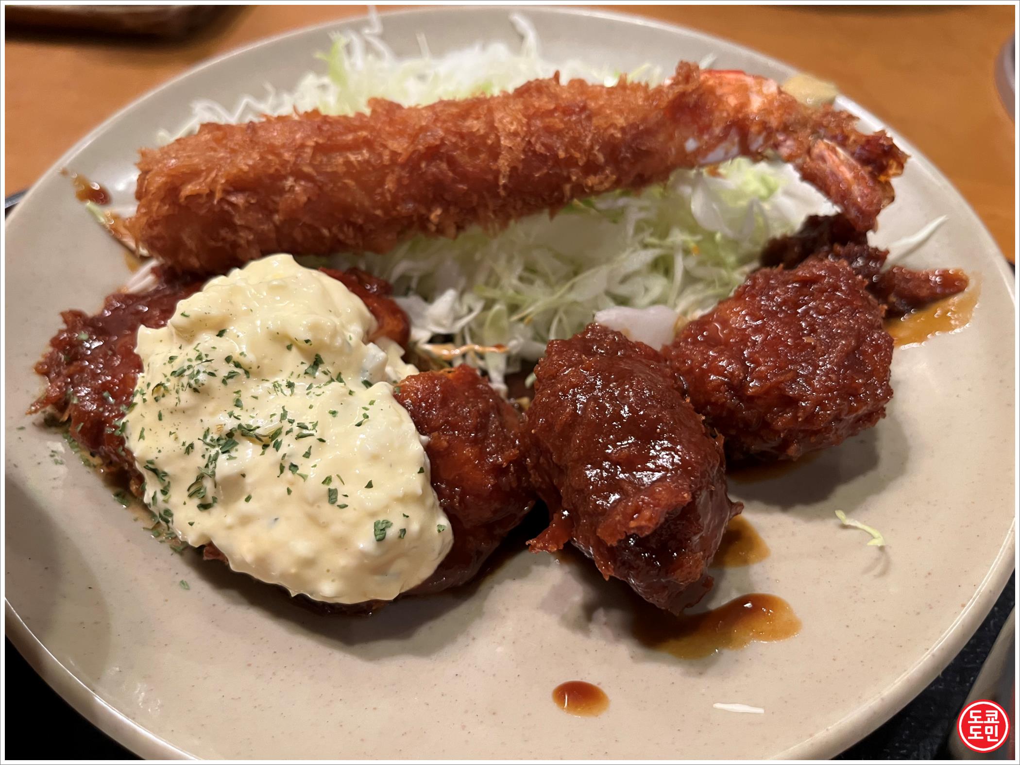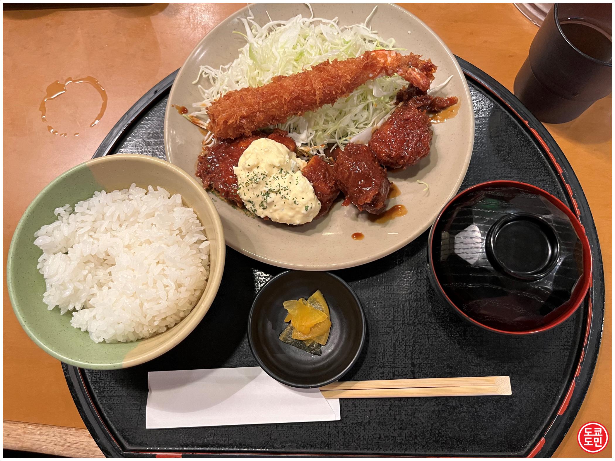"나고야 메시시젠(名古屋めし膳)" 은 새우튀김, 돼지 히레카츠, 닭고기 카츠 였던거 같습니다.