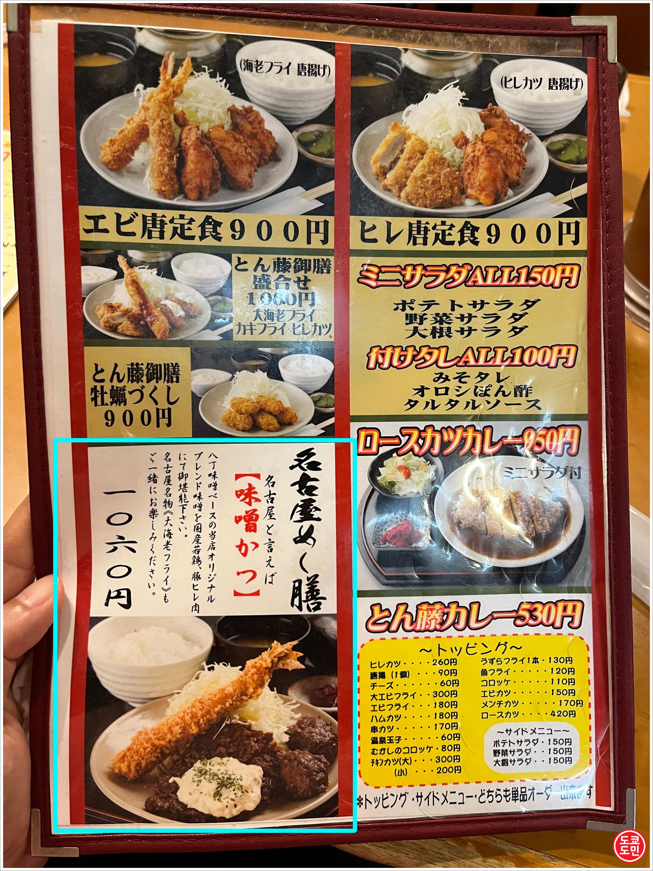 저는 파란색으로 표시한 "나고야 메시시젠(名古屋めし膳)" 을 주문!