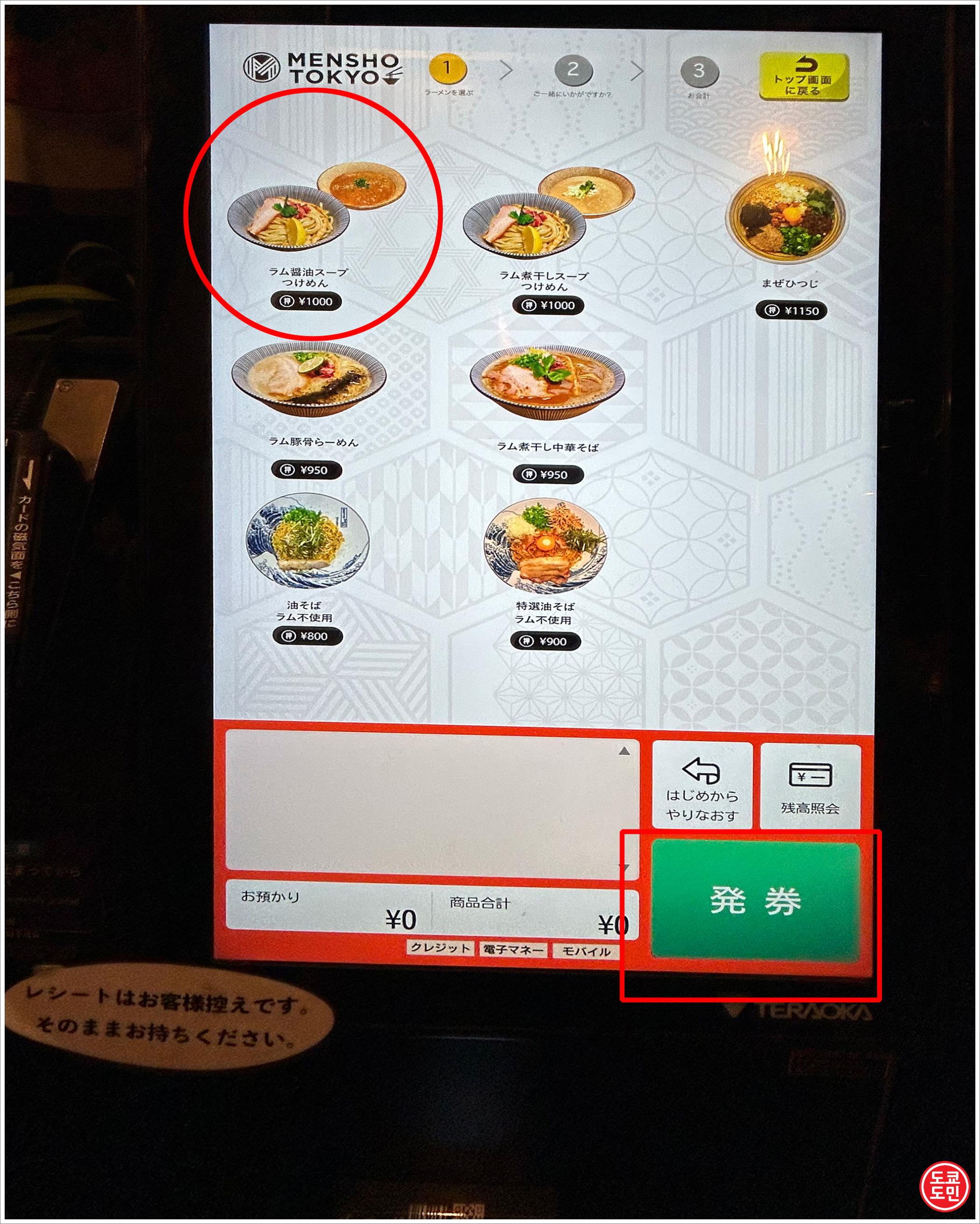 가게 안으로 들어오면 오른쪽에 키오스크(식권발매기)가 있습니다.