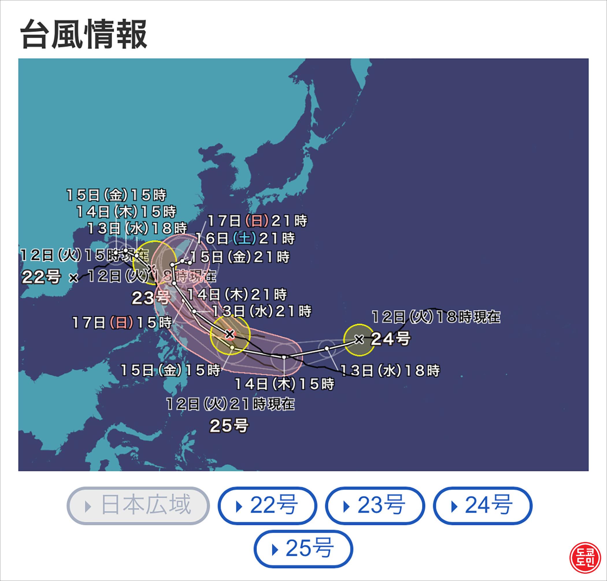 오키나와와 가장 멀리 떨어져 있는게 24호 태풍인데 이동속도가 25호보다 24호가 빠르더군요.