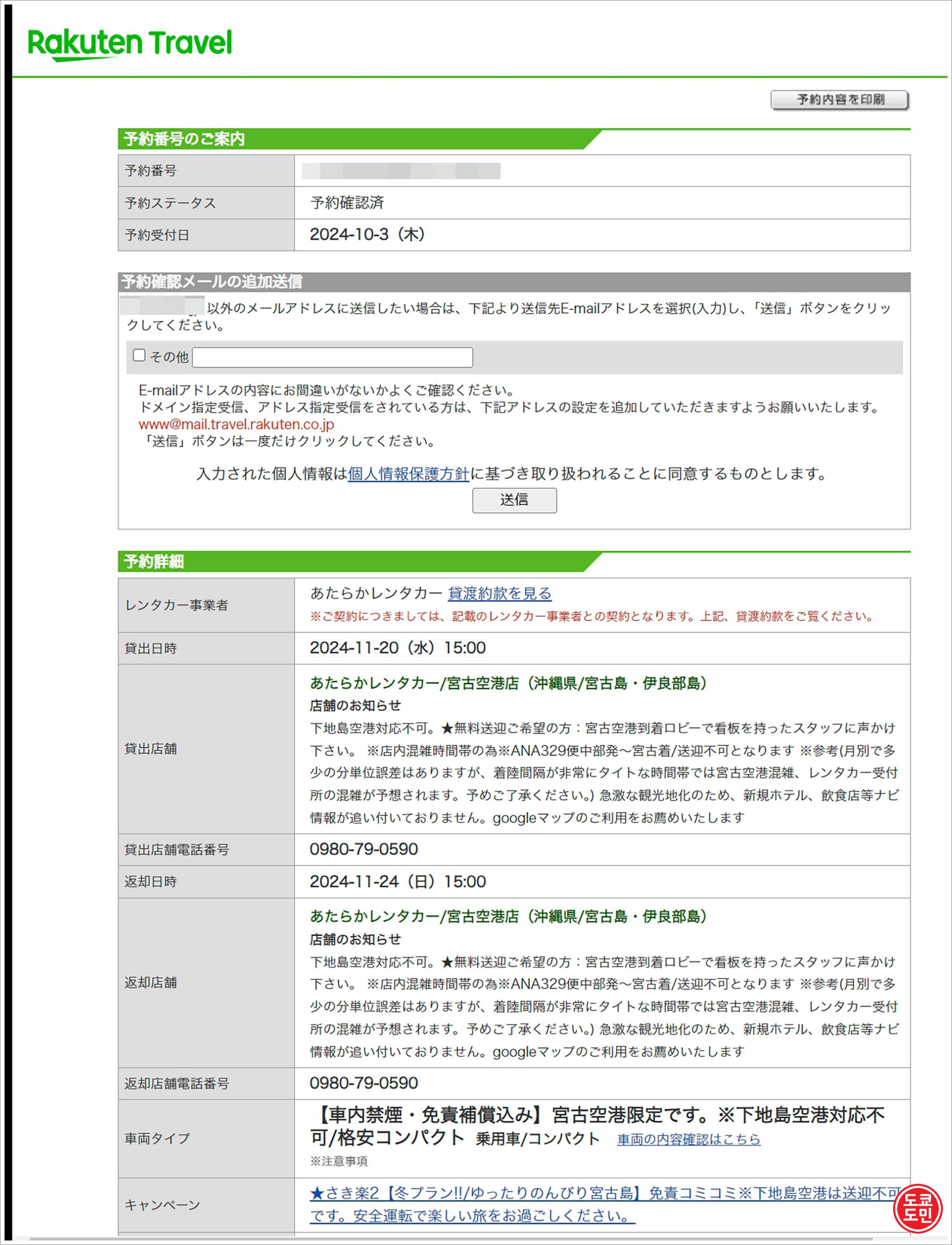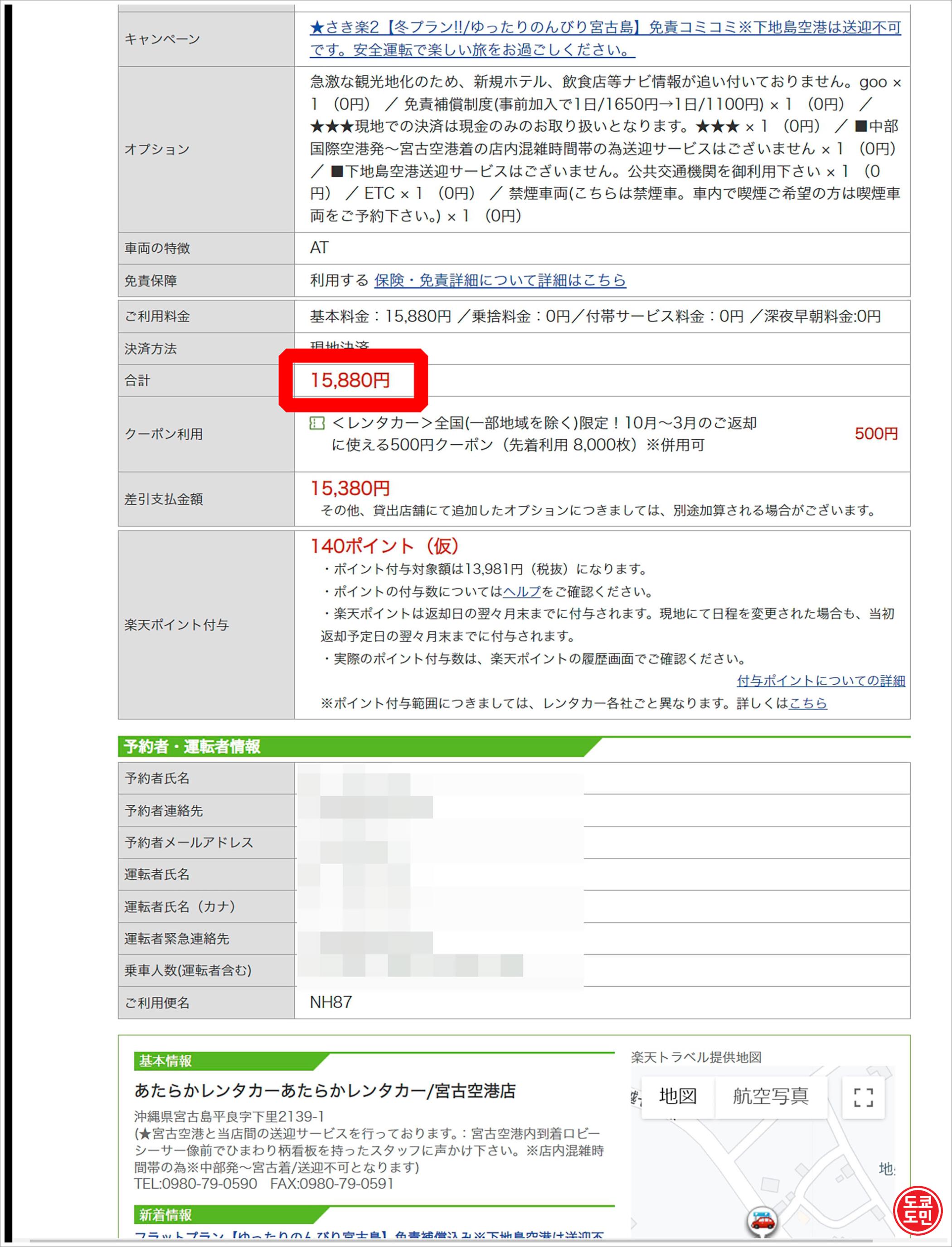 일본에 거주중인 저는 라쿠텐 트래블 사이트에서 렌트카를 예약했습니다.