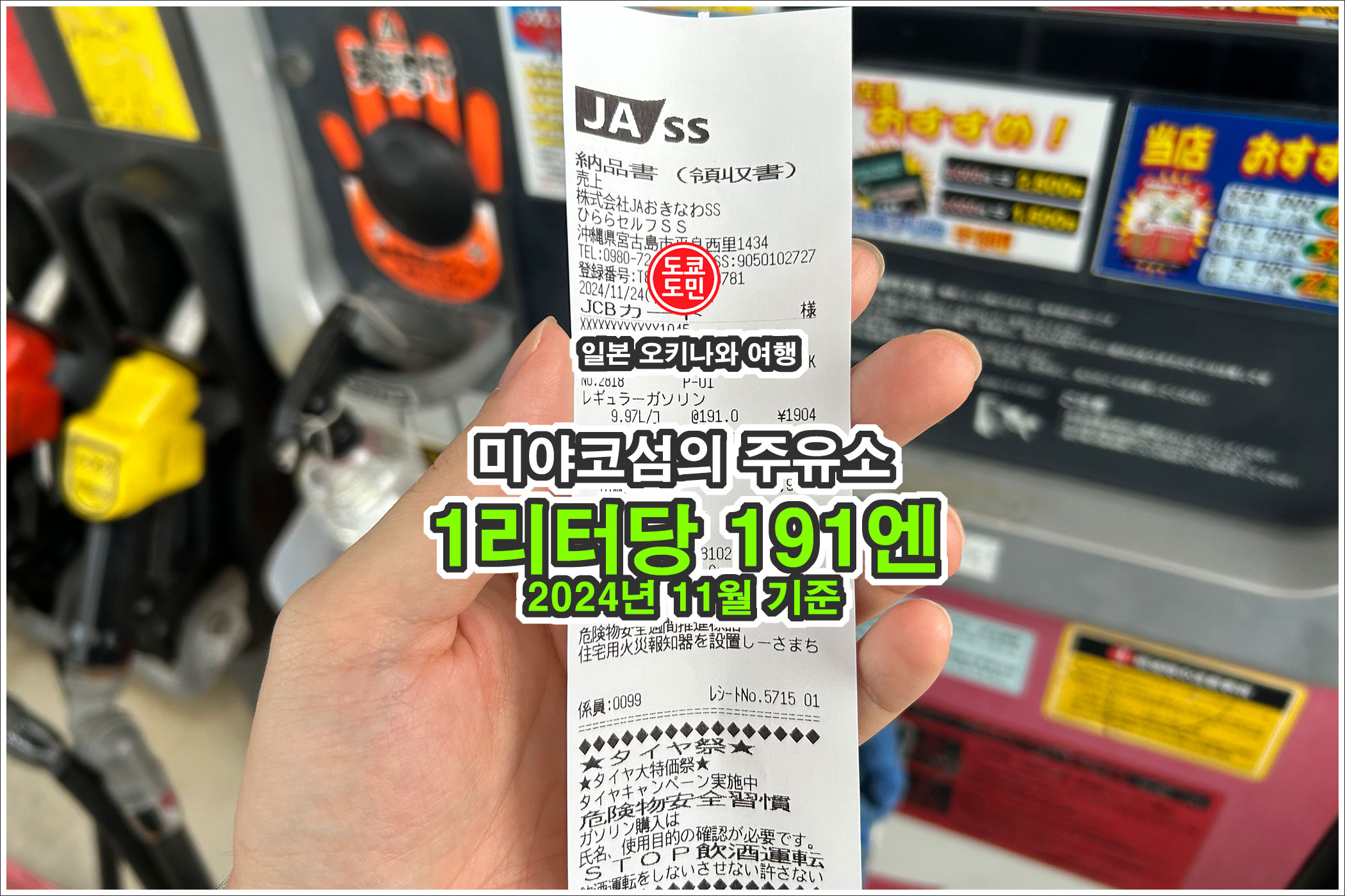2024년 11월 기준으로 오키나와 미야코섬의 주유소 기름값은 1리터당 191엔(약 1,910원).