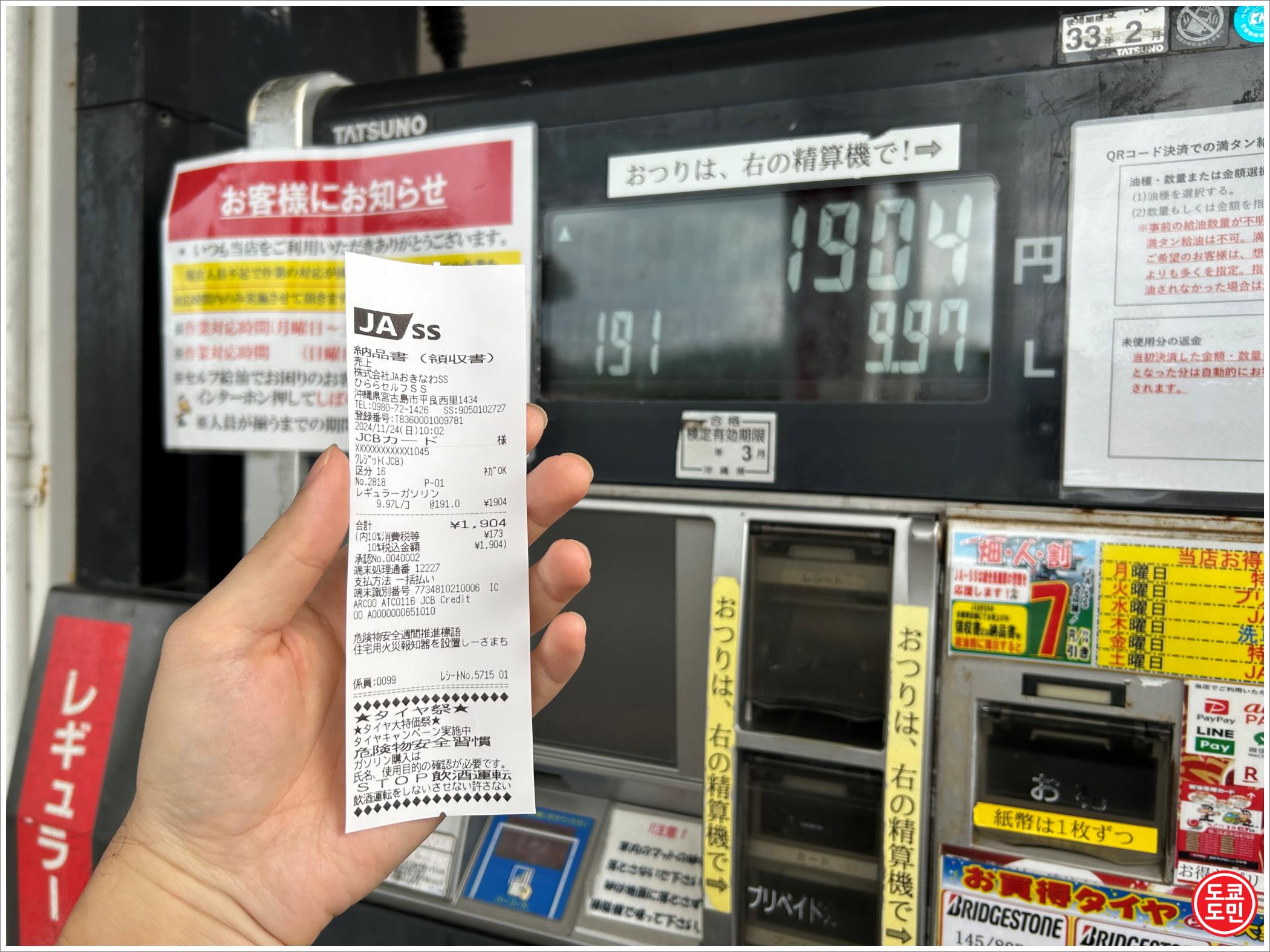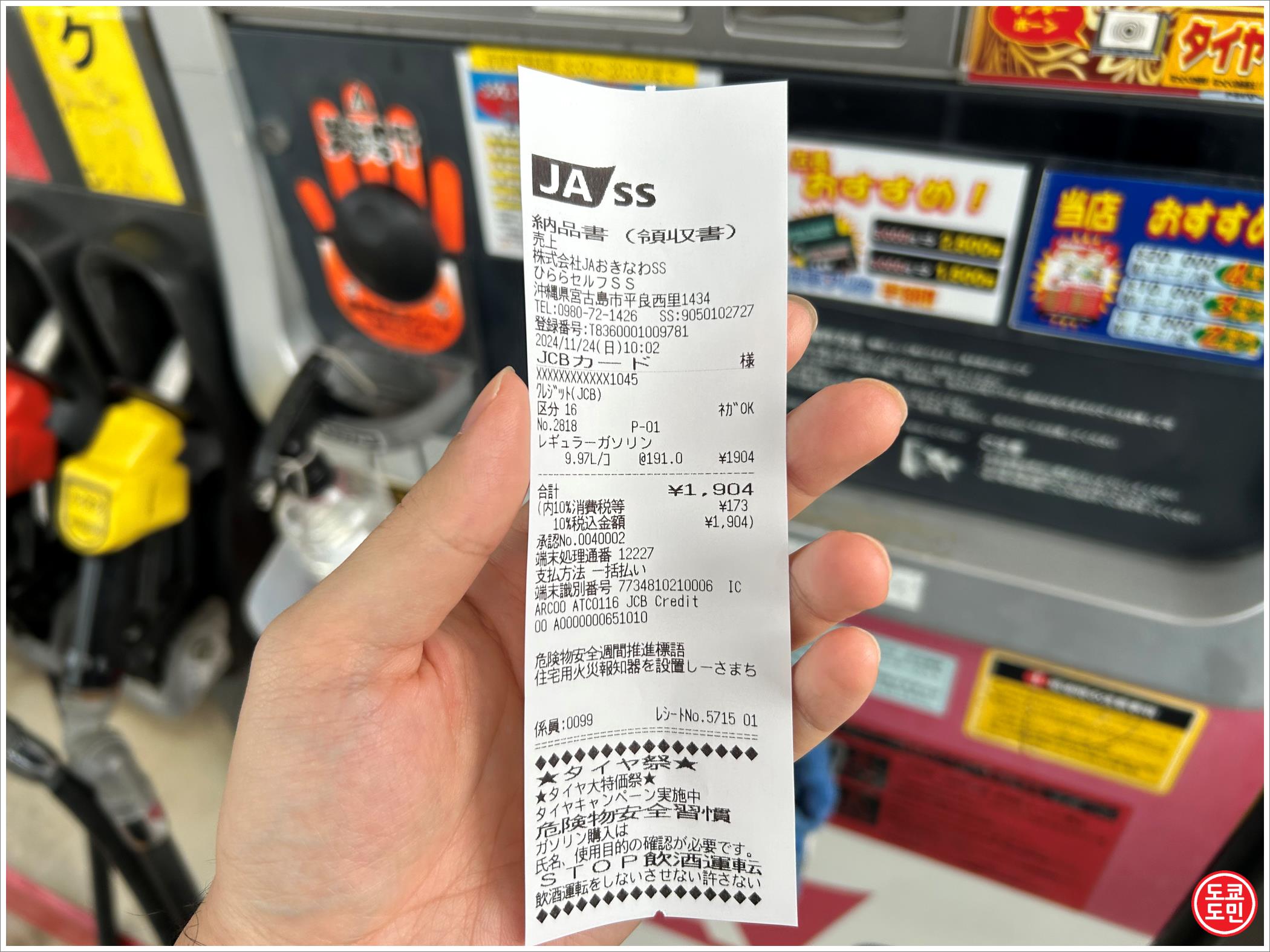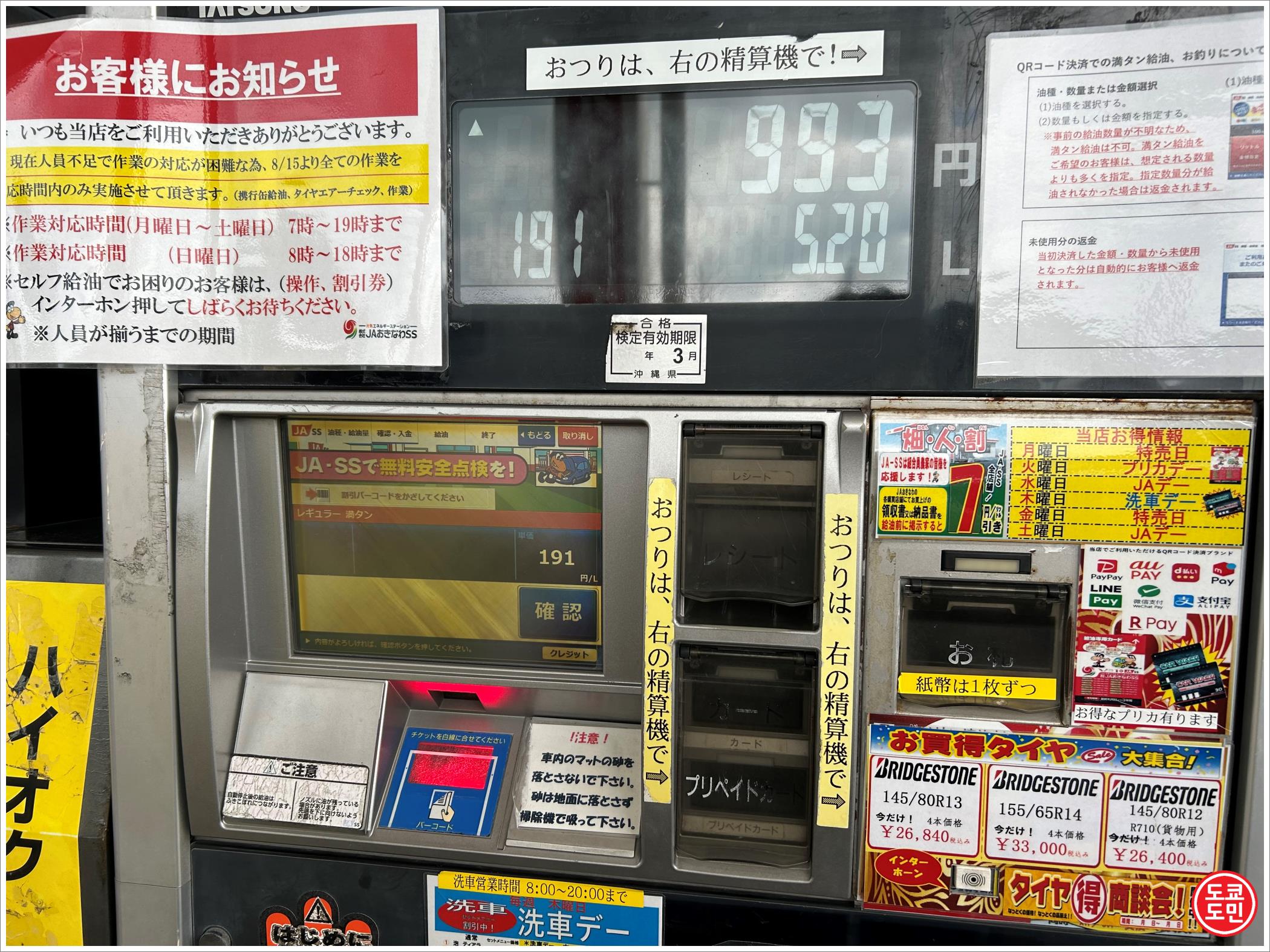 2024년도 미야코지마 여행에서 렌트카를 이용했던 "아타라카 렌트카"에서 가까운 셀프 주유소에서 기름을 넣었습니다.