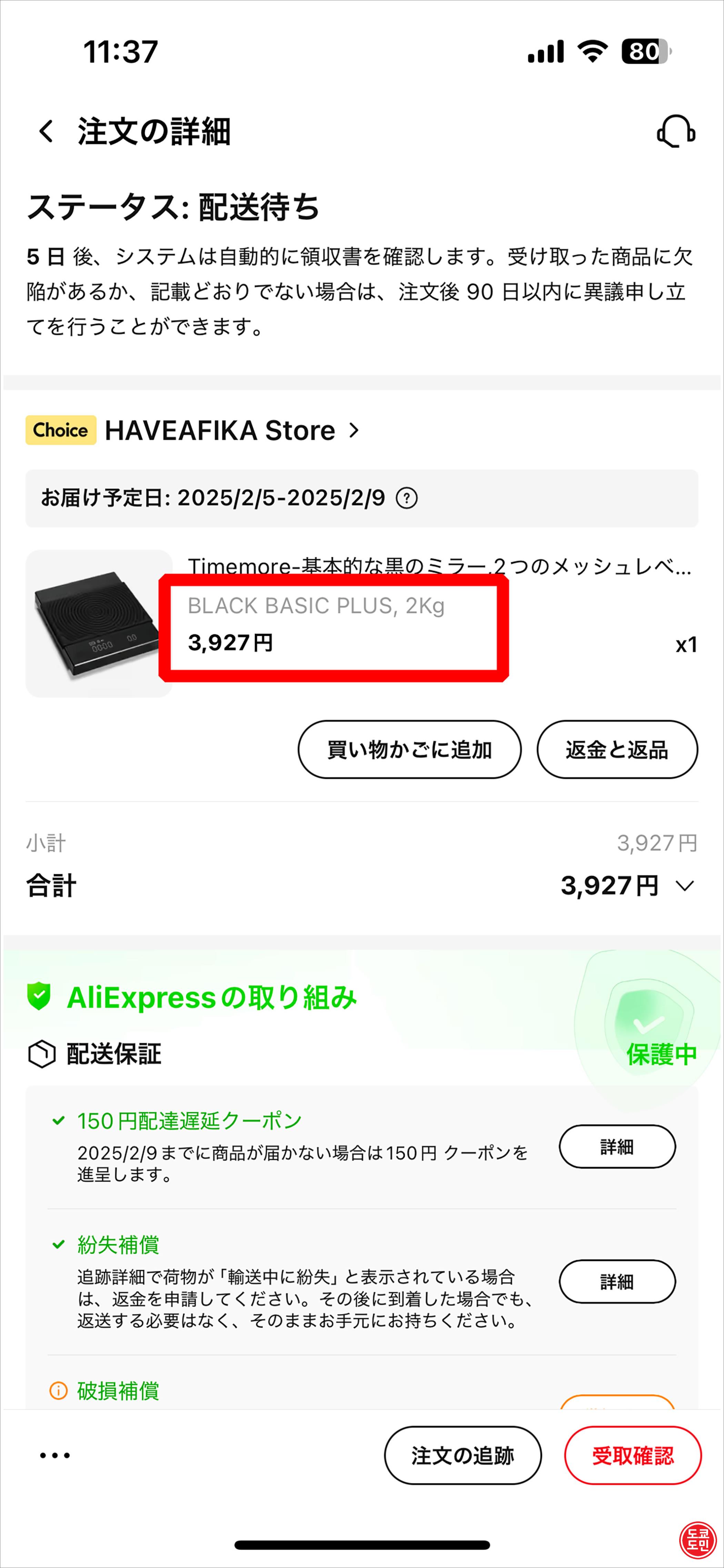 구매한 가격은 3970엔 (약 4만원).