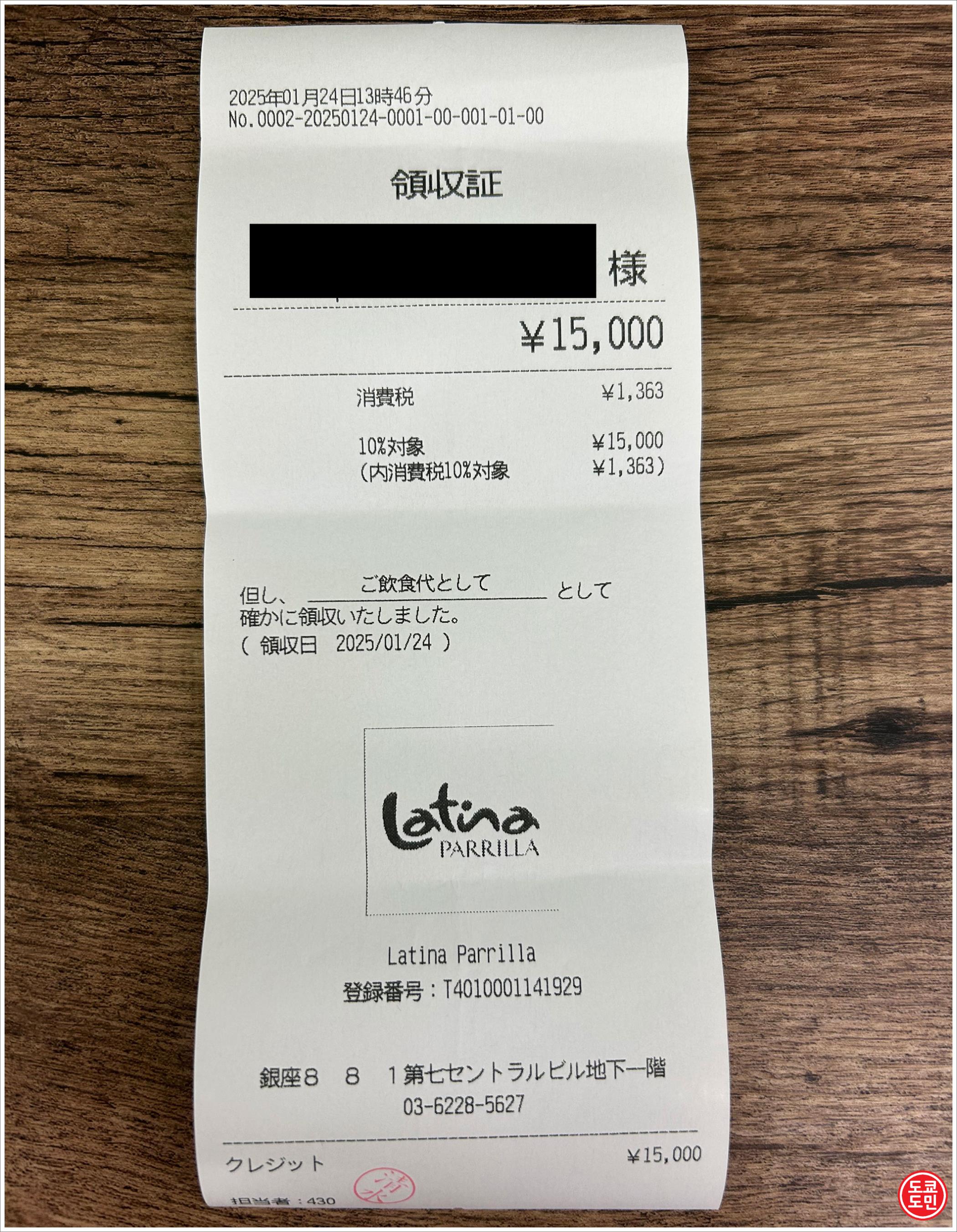 3명이서 5000엔 런치코스를 먹고, 총 15000엔(약 15만원) 나왔는데,