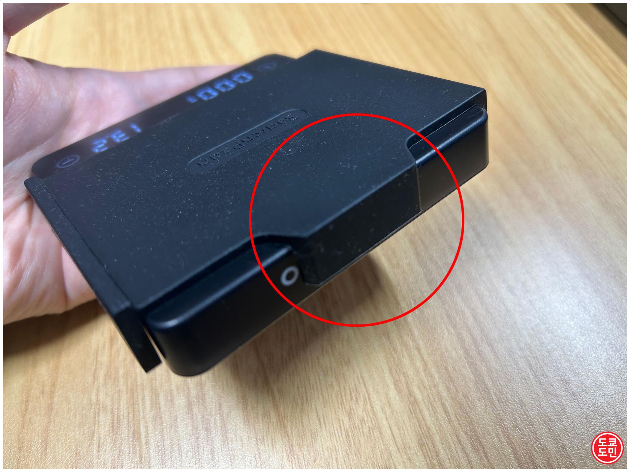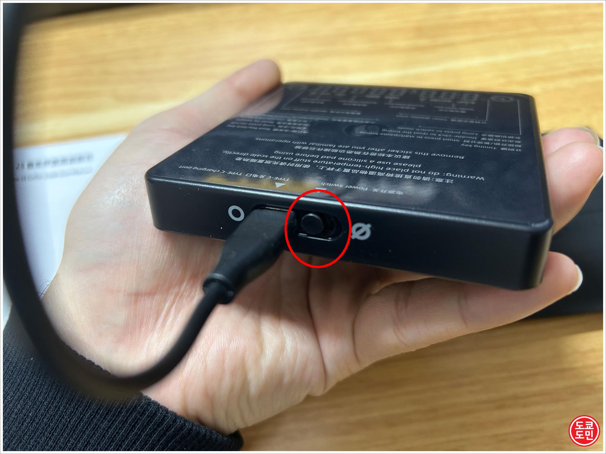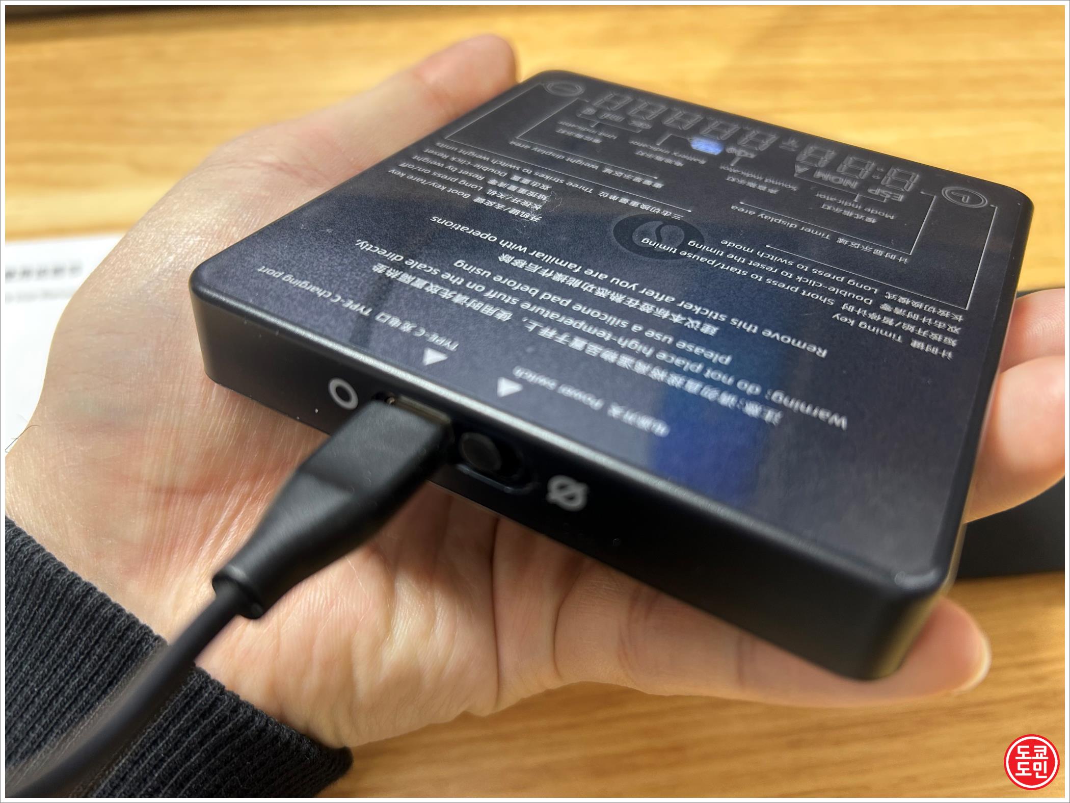 본체에 USB-C 충전 케이블이 있는 곳은 본체 윗쪽 측면에 있다.