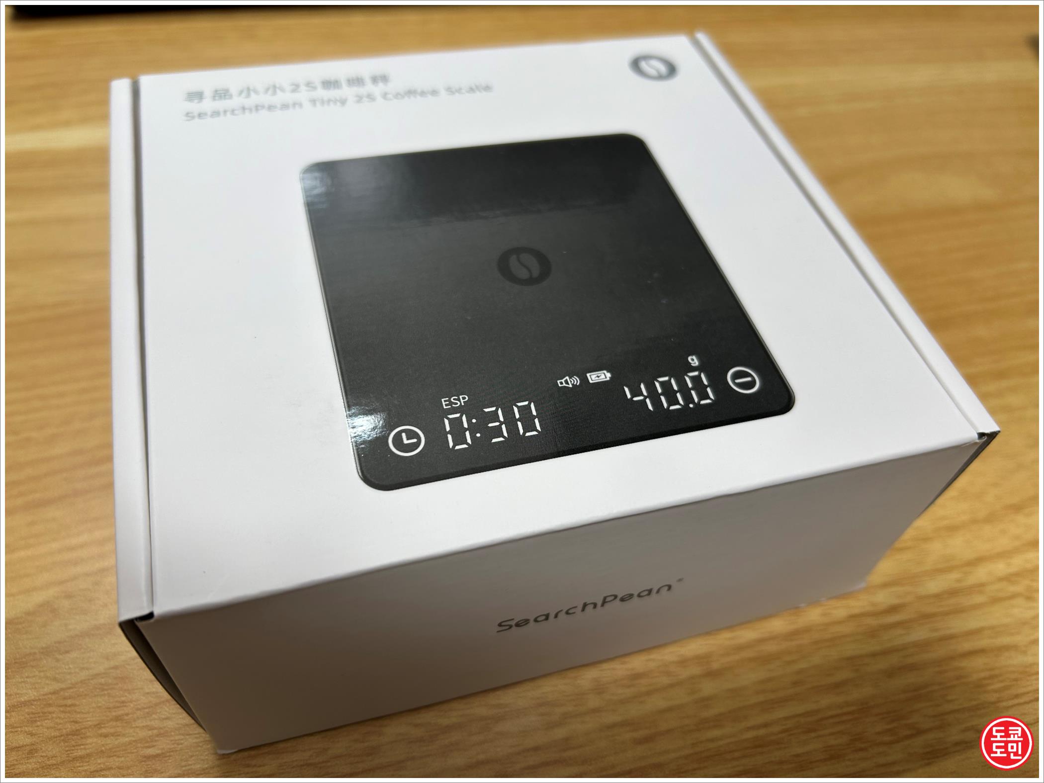 "Searchpean Tiny2s" 커피저울 본체는 비닐에 씌여져있다.