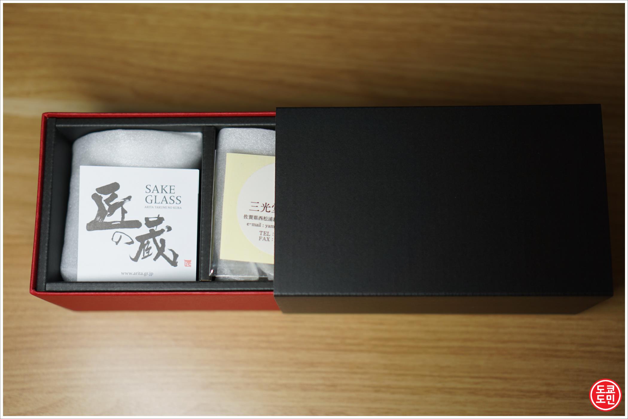 그래서 사쿠라 디자인의 아리타야키 "타쿠미노 쿠라" 브랜드의 술잔으로 채워서 선물!!