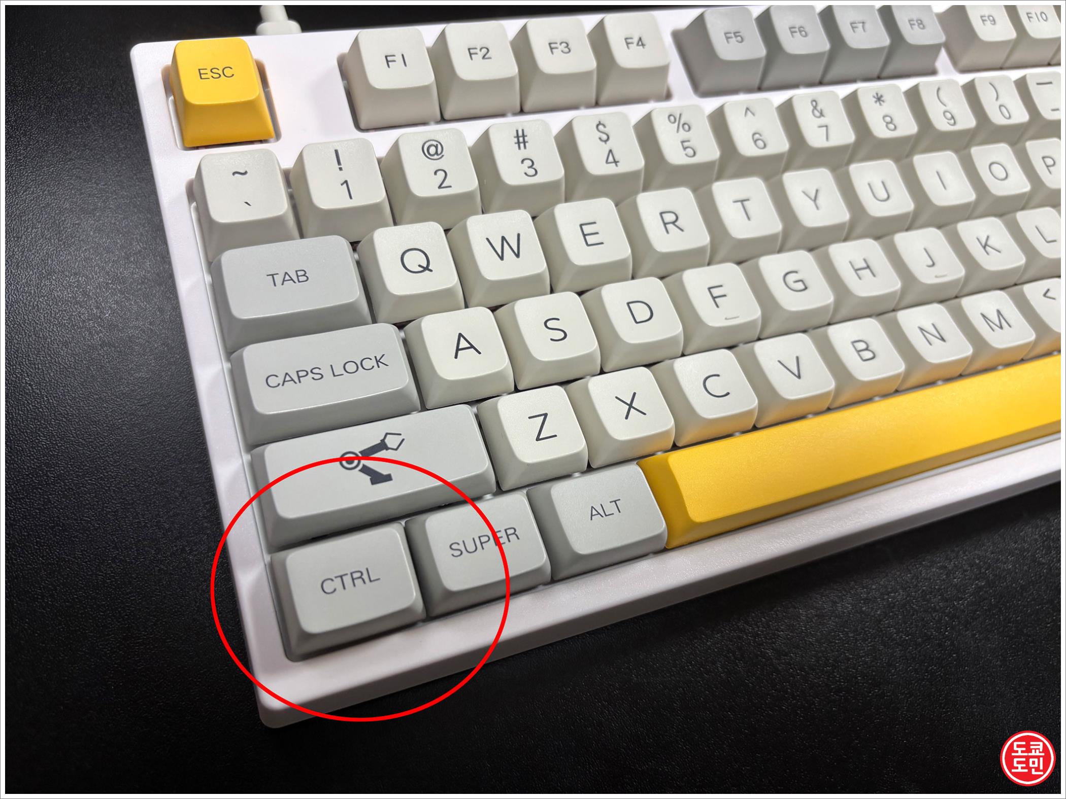 배터리 ON 상태에서 USB-C 로 전원 공급을 하면 배터리 충전이 되는데 충전중일때에는 아래와 같이 왼쪽 CTRL 키에 녹색 백라이트가 들어온다.