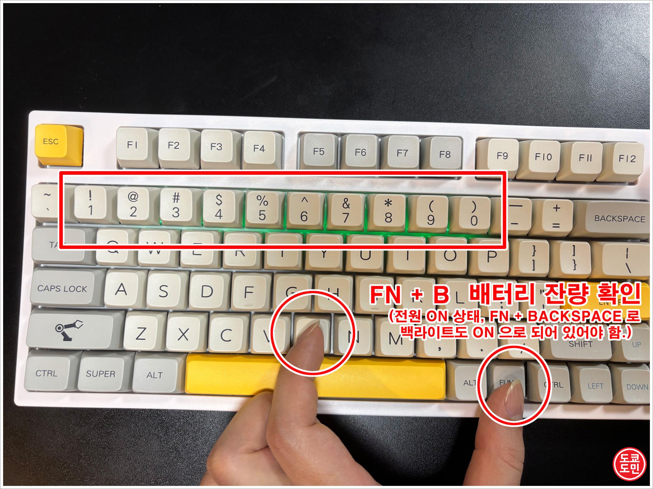 배터리 사용을 "ON" 상태로 하고, FN + B 를 눌러보면 상단 숫자키에 녹색불이 들어온다.