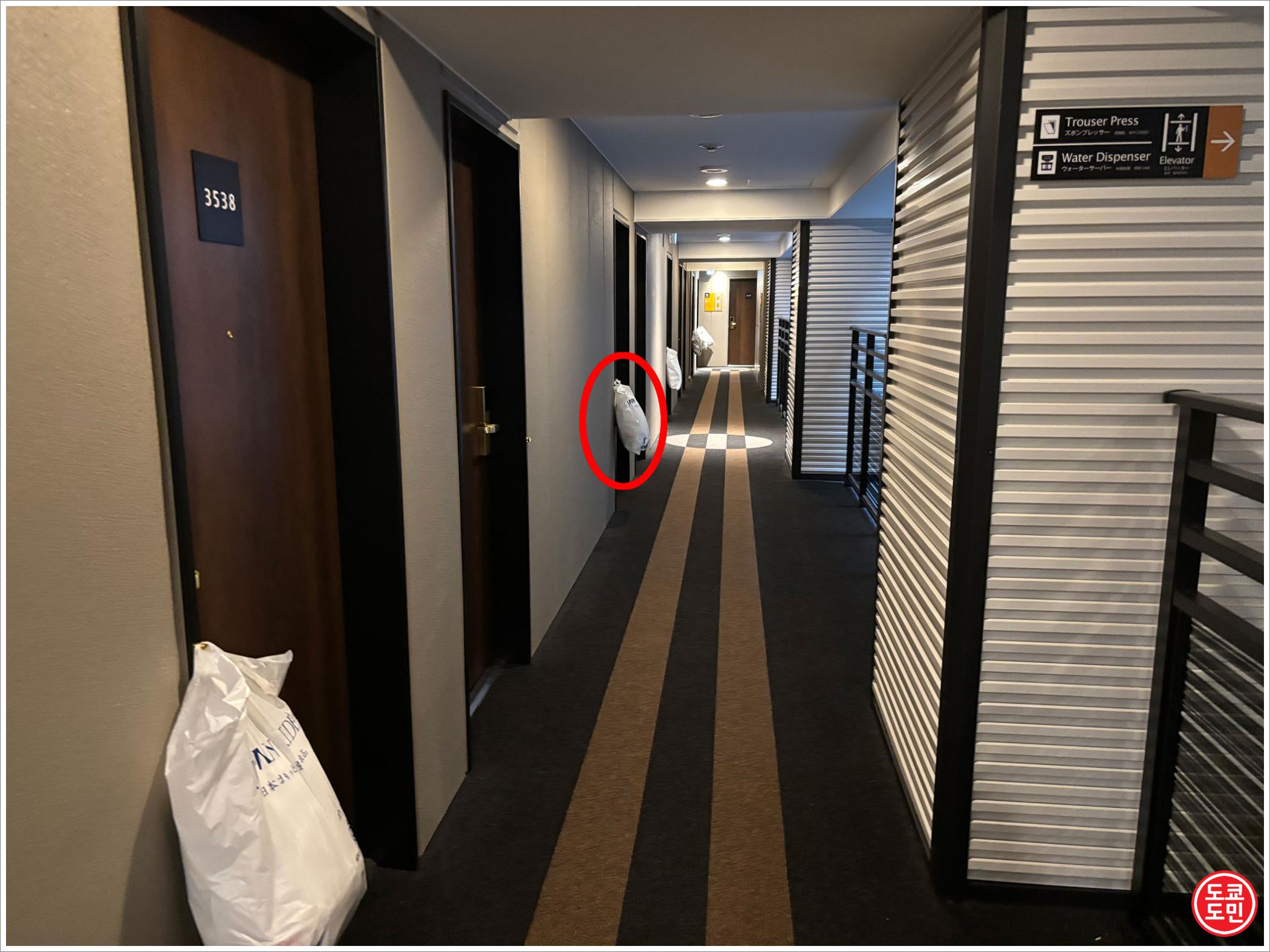 방 청소를 안해주는 날은 문 밖에 저렇게 타올, 유카타등이 들어있는 봉지가 걸려있습니다.