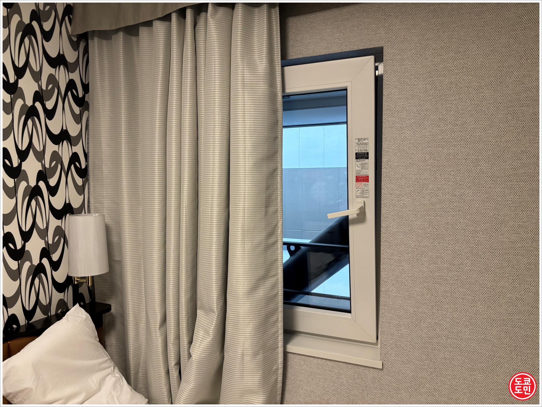 35층이라 좋은 뷰를 생각하겠지만, 숙박요금이 저렴한 요금이어서 그런지 안쪽을 바라보는 방이었습니다.