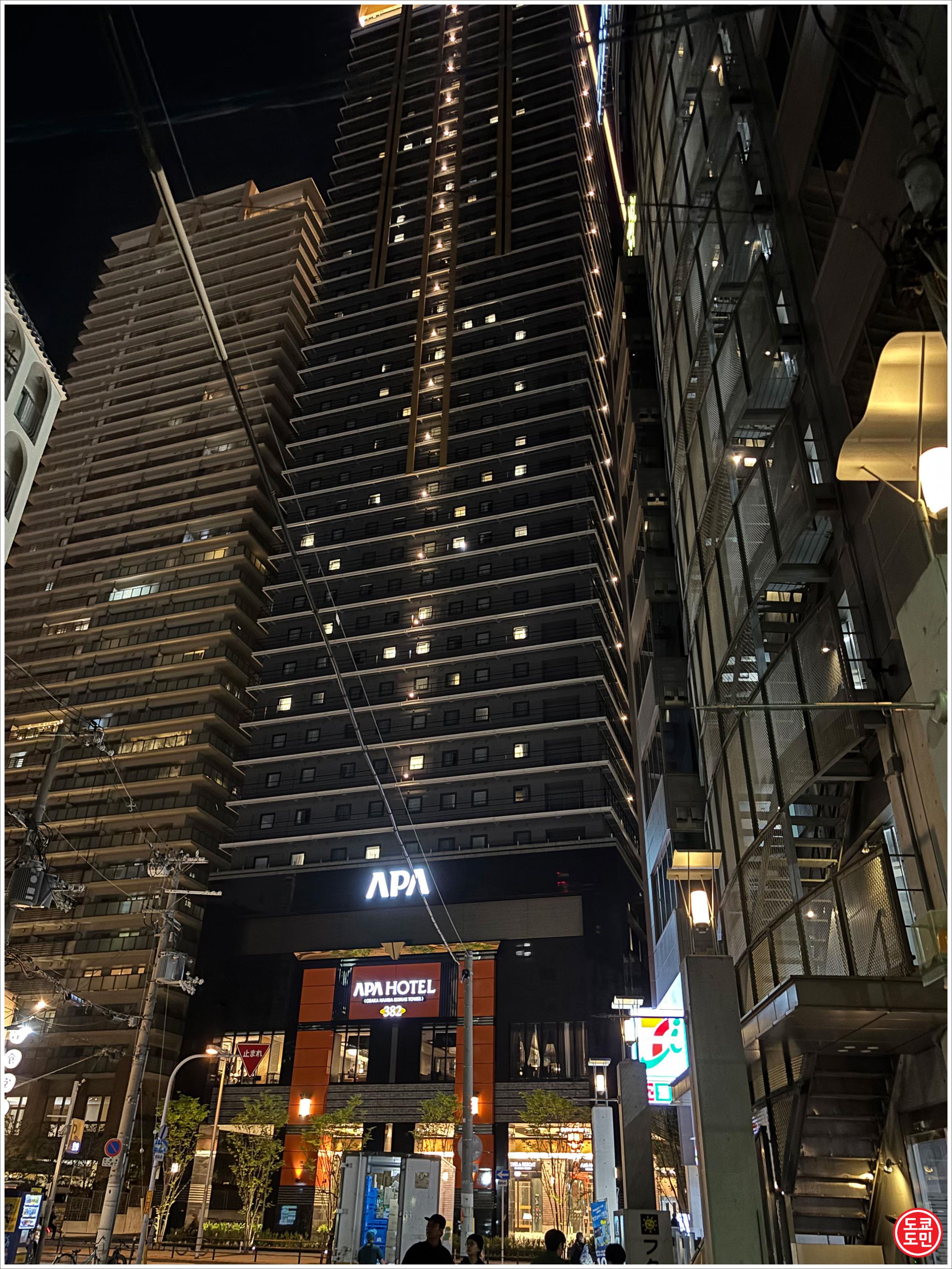 아파호텔(APA HOTEL) 오사카 난바 에키마에 타워 외관입니다.
