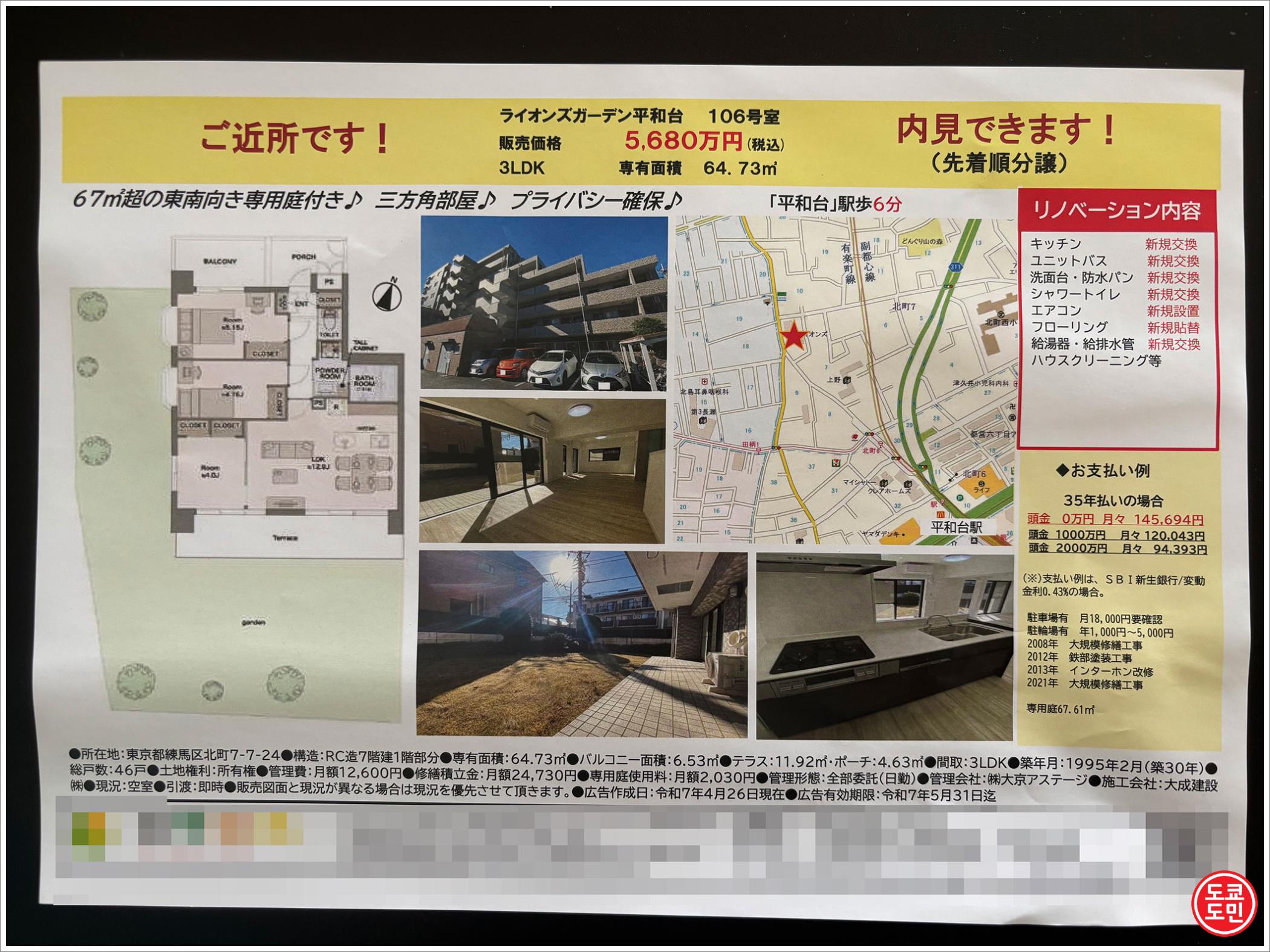 도쿄 23구내의 지반이 튼튼하고 해발도 높은 지역인 "네리마구" 라는 곳에 있는 맨션입니다.