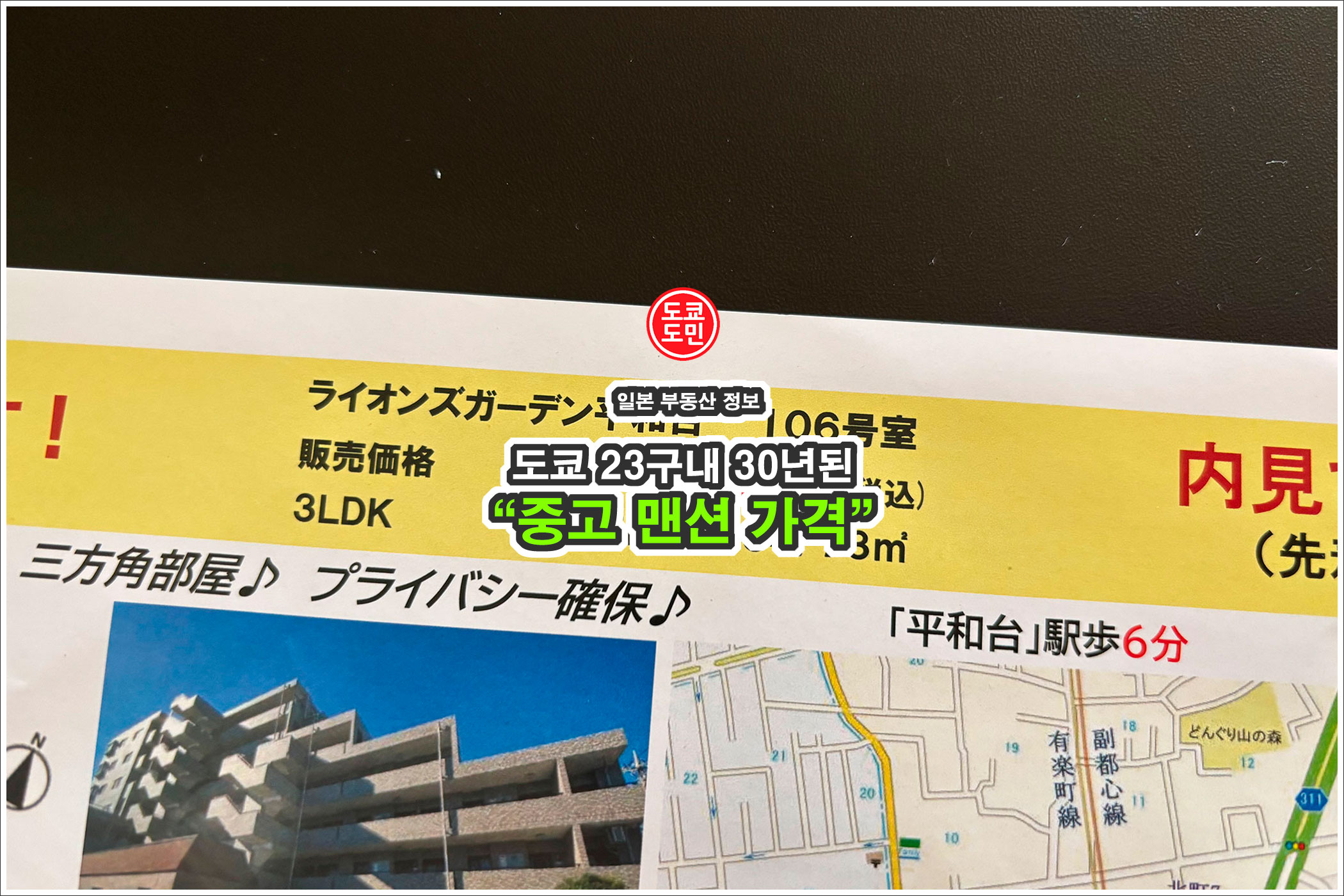 2025년 기준으로 도쿄 23구내에 지하철 노선 2개가 이용 가능한 30년된 19평짜리 중고 맨션(아파트)의 가격은 5680만엔(약 5.6억원).